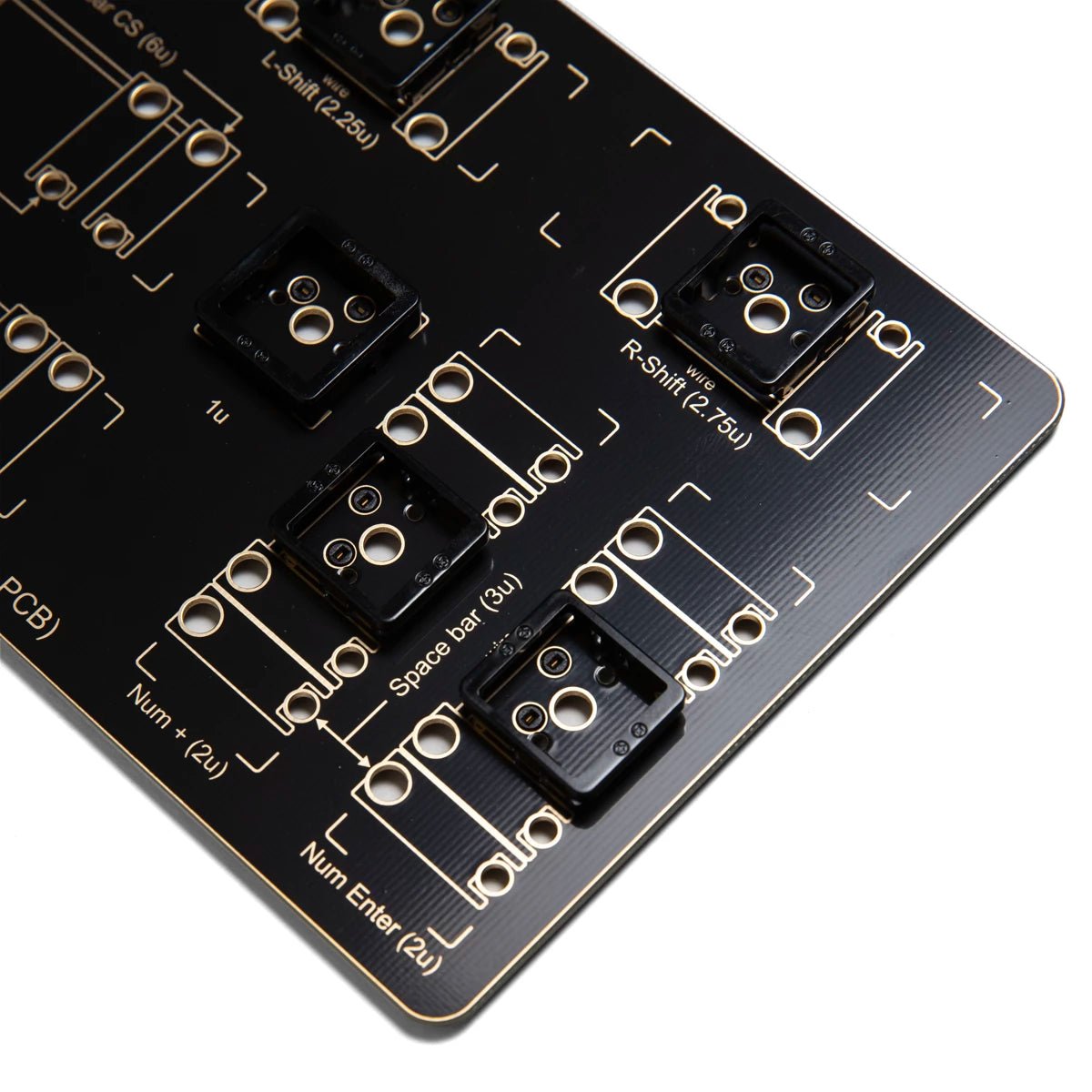 TX Stabilizer Tester with Switch Holders are now larger and more intuitive than the normal switch testers. With switch holding brackets installed to keep the switch in place to better simulate how the stabilizers will perform as well as installed hotswap sockets and bumpons.