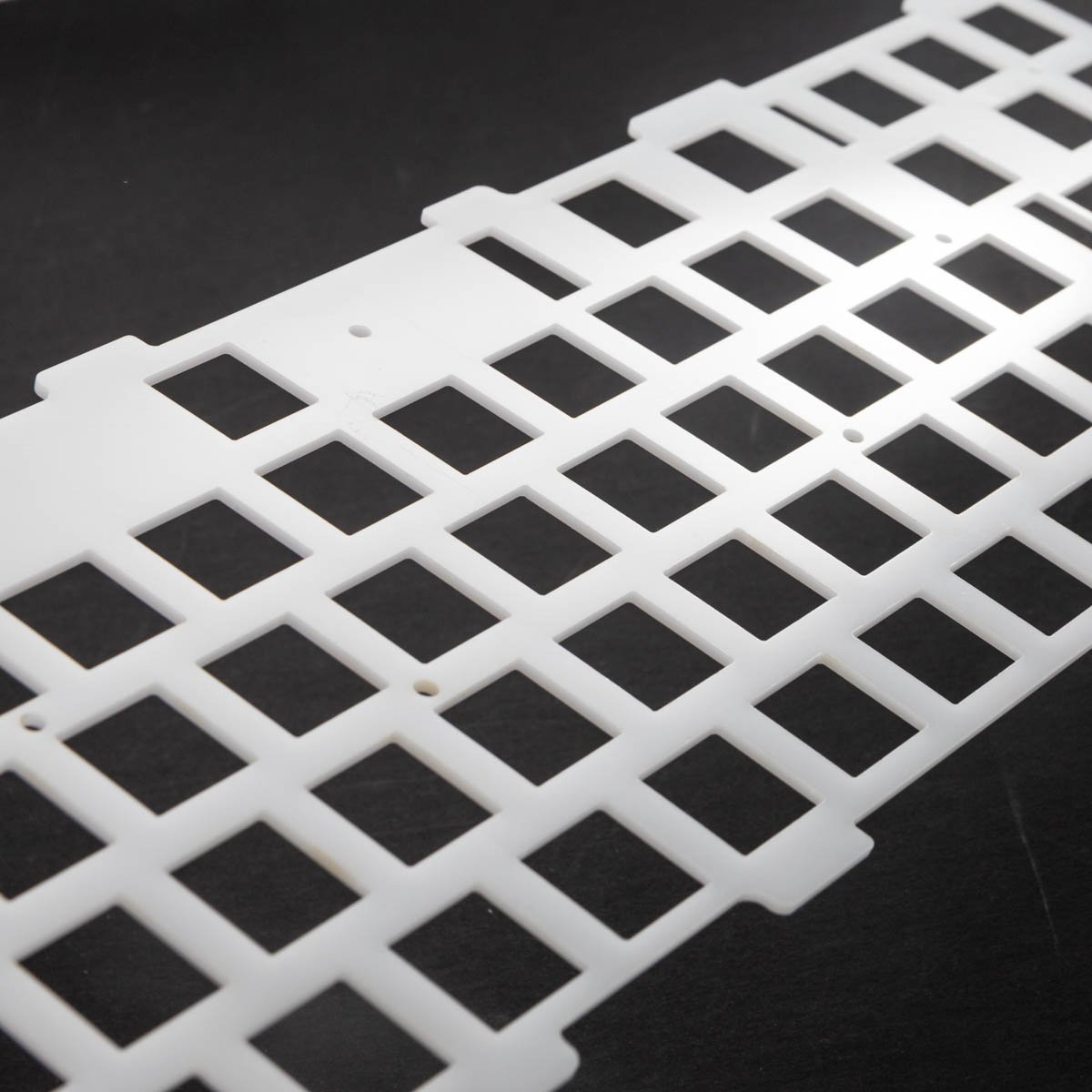 Bredworks KBD67 Lite allows different plate options than the standard polycarbonate. Available in FR4 and POM, these plates were manufactured and designed by a third-party by enthusiasts for enthusiasts.