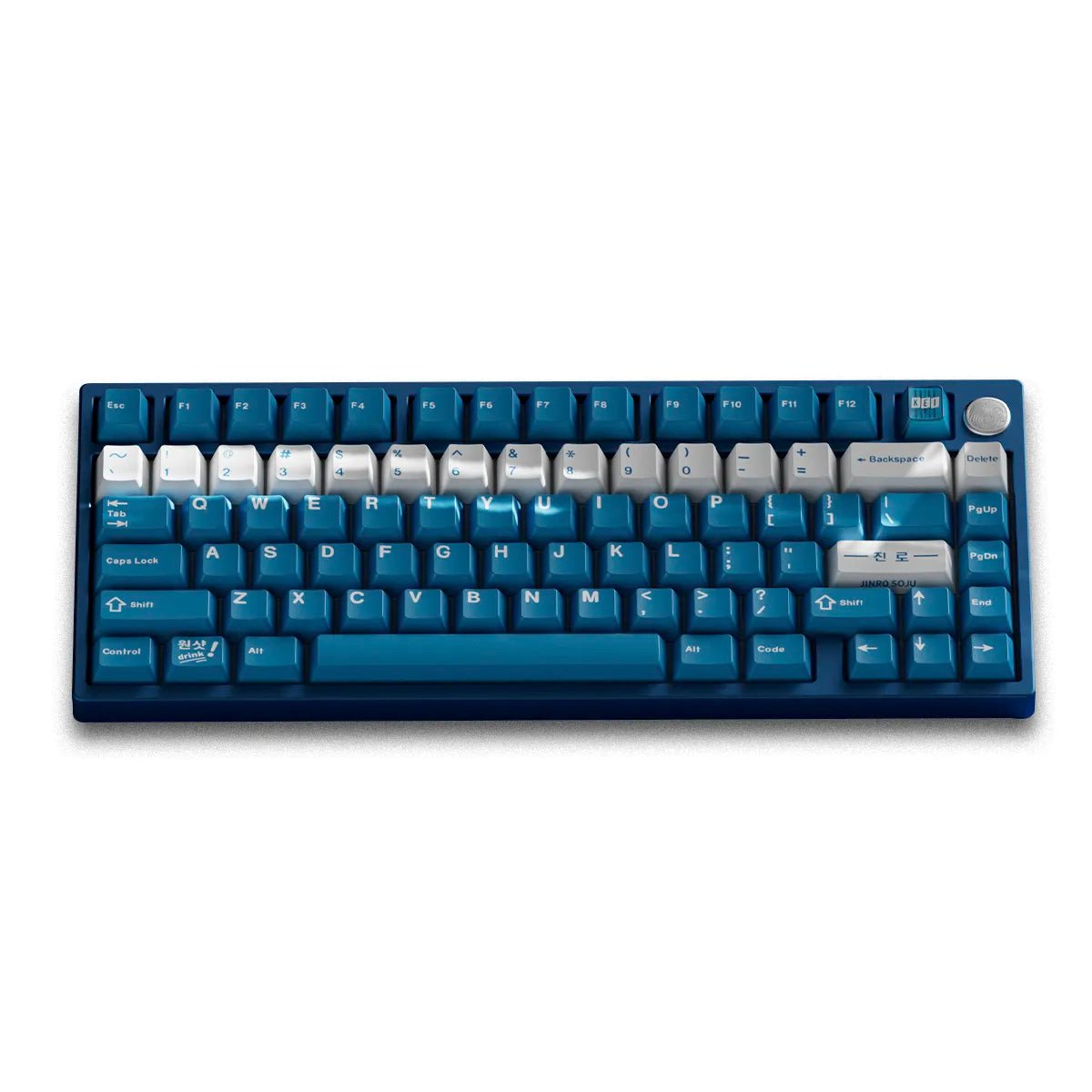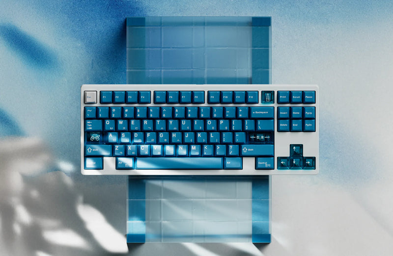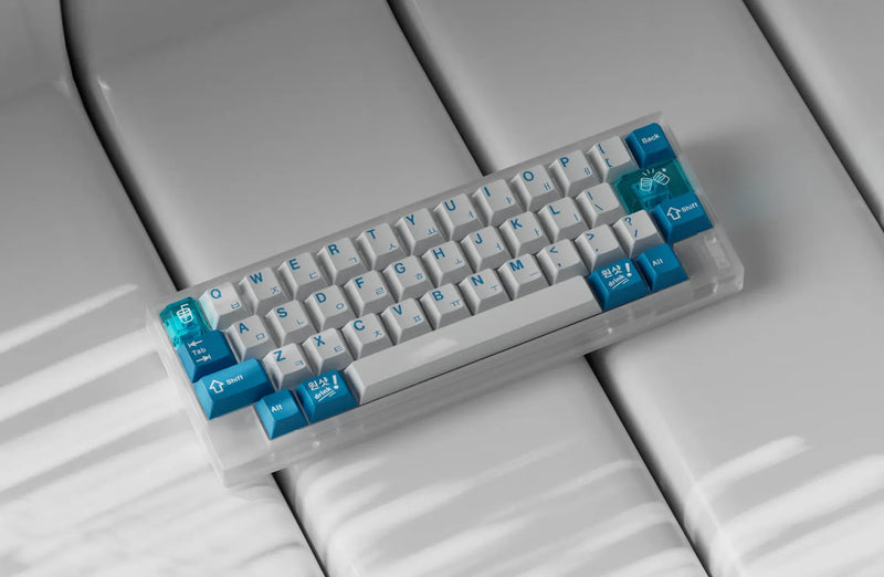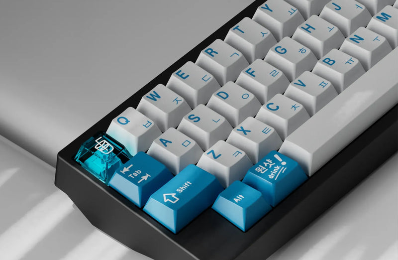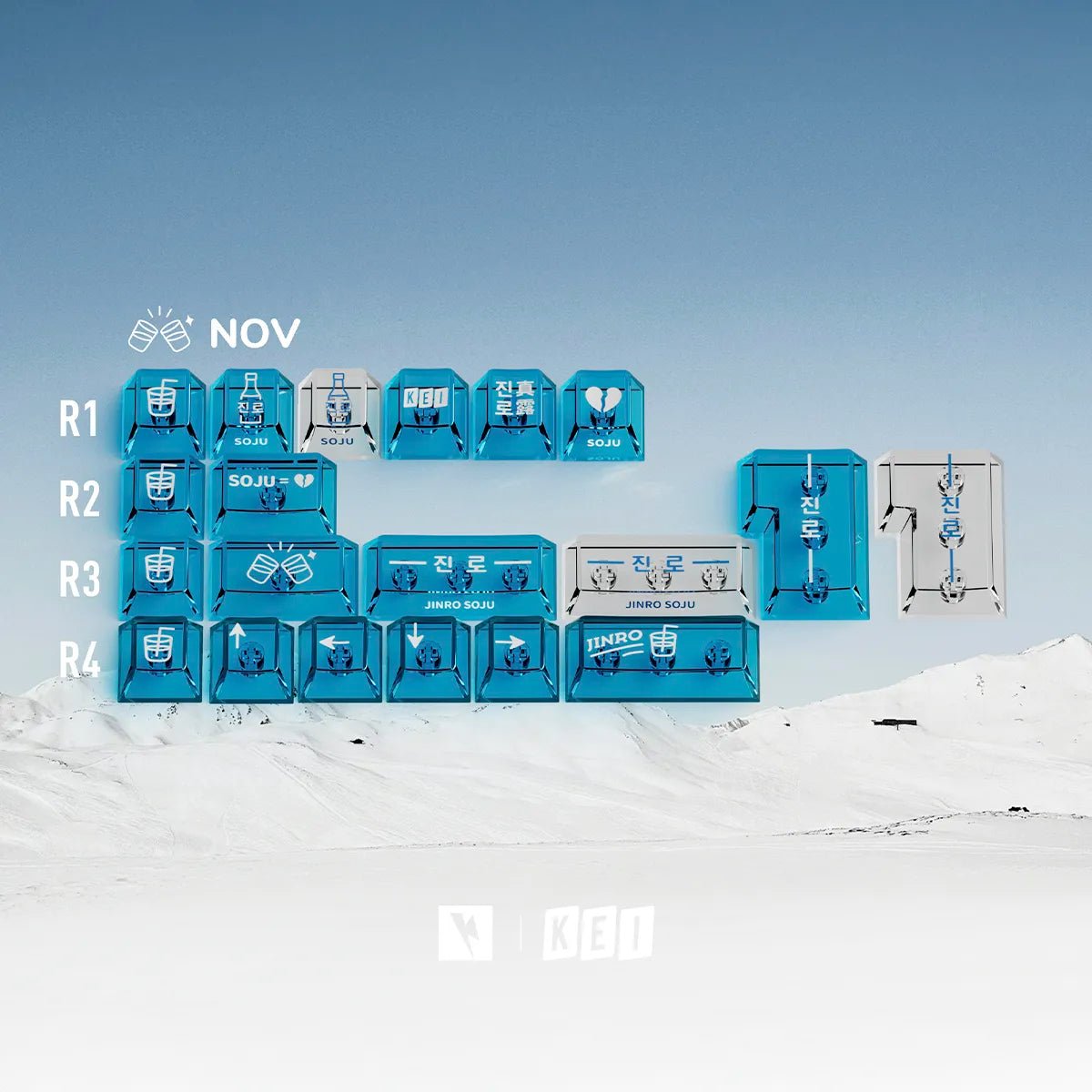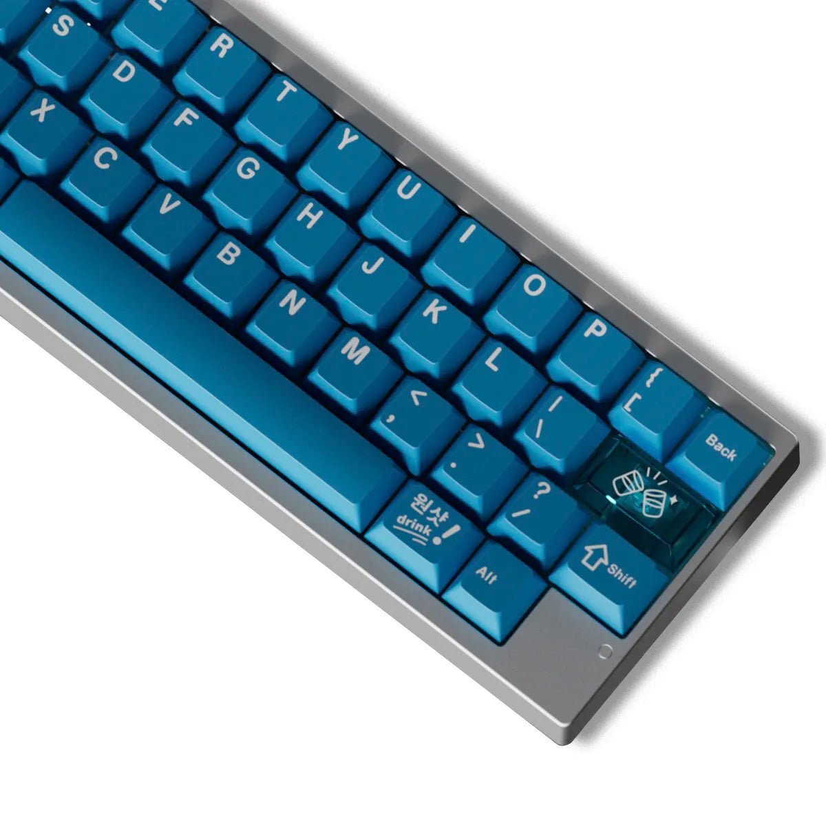 KKB Soju Keycaps encapsulates the drinking culture of Korea with this white-on-blue set. From the on-theme novelties to the optional Hangul alphas, Soju is able to showcase that iconic, vibrant blue.