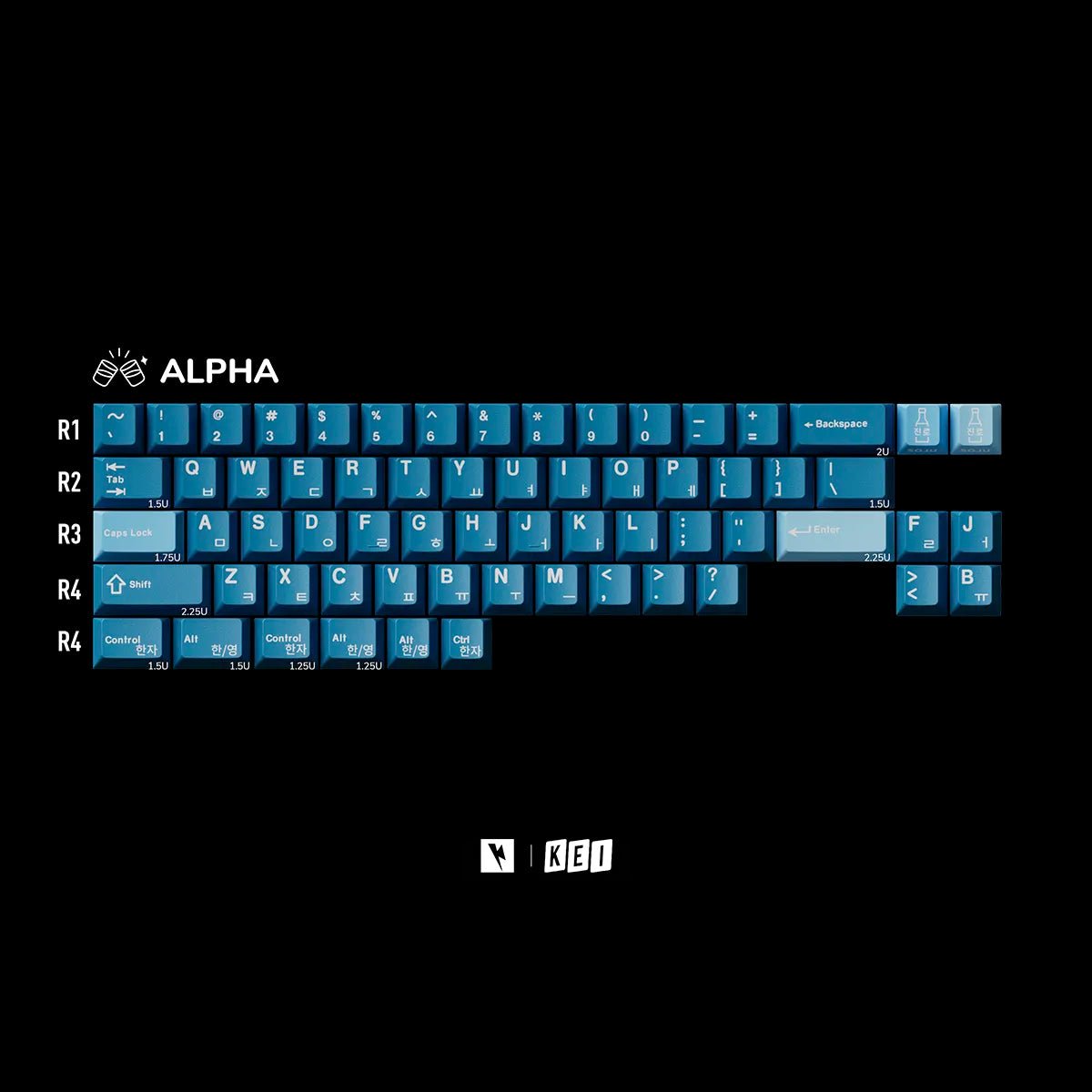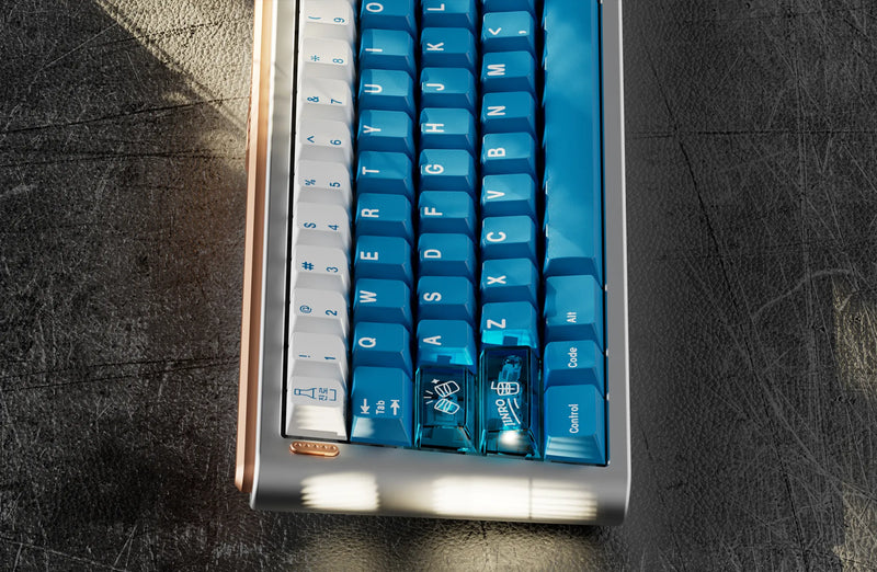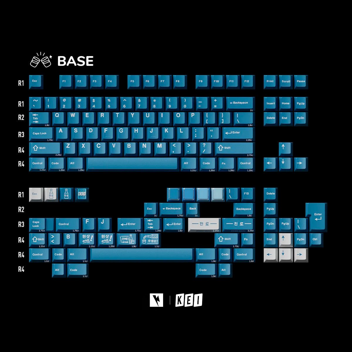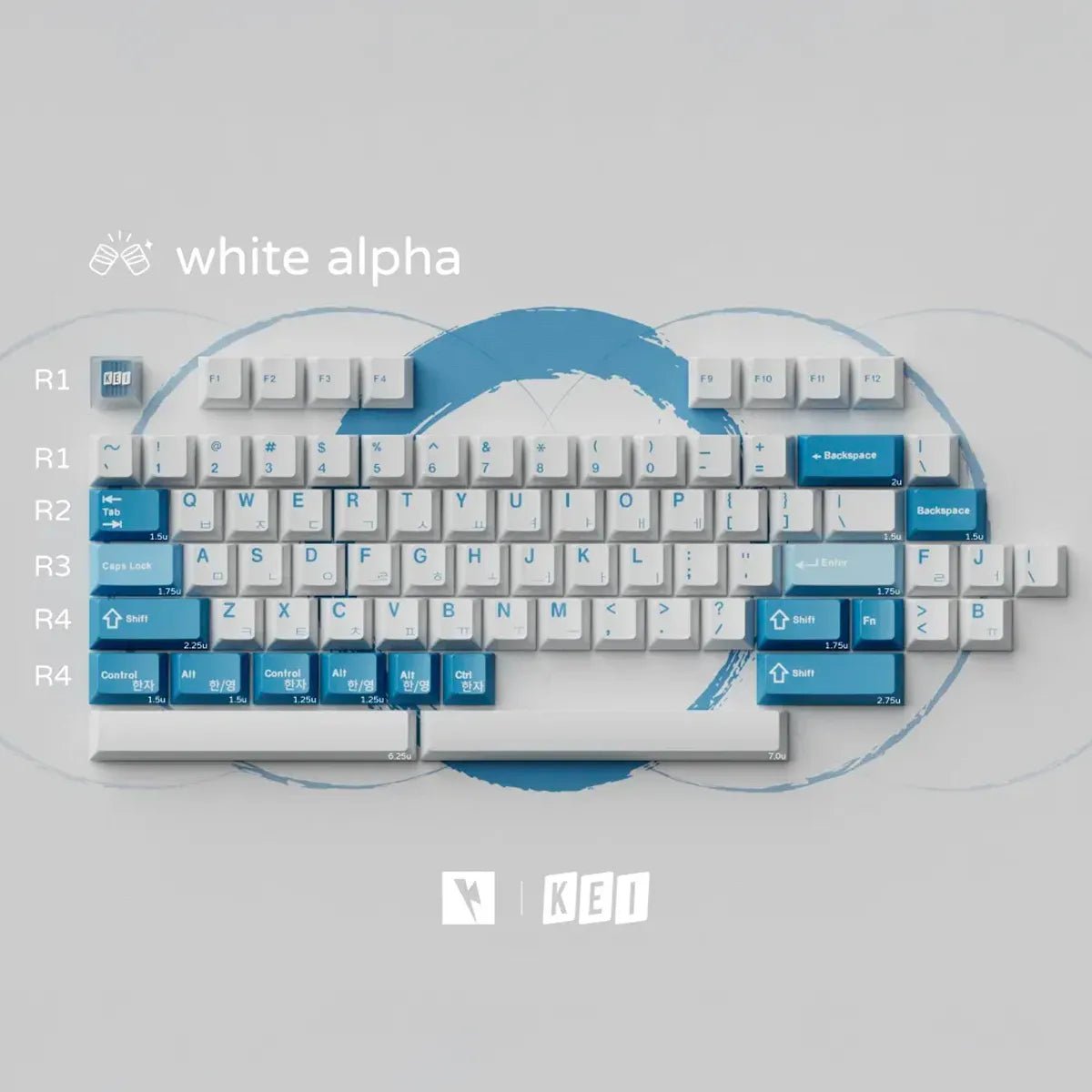 KKB Soju Keycaps encapsulates the drinking culture of Korea with this white-on-blue set. From the on-theme novelties to the optional Hangul alphas, Soju is able to showcase that iconic, vibrant blue.