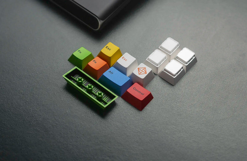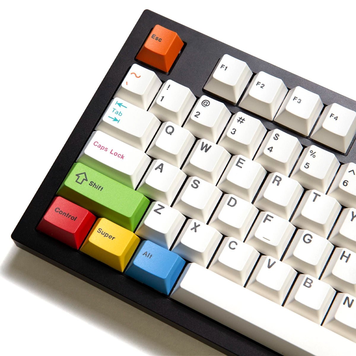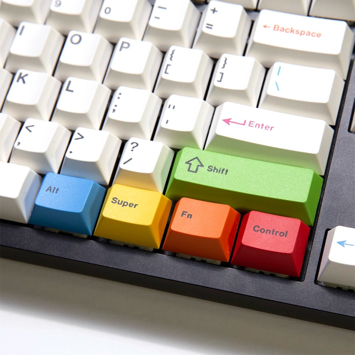 Keykobo RainBoW Keycaps are modifier and accent keycaps that pair well with white, black, and beige keycap sets with white matching Keykobo's BOW set.