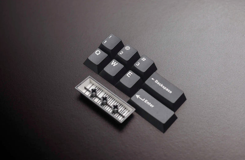 Keykobo WoB Keycaps are Keykobo manufactured white legends on black base (white-on-black) keyacps. With optional white accent pieces and pairs well with the RainBoW and RainWoB extension kits.