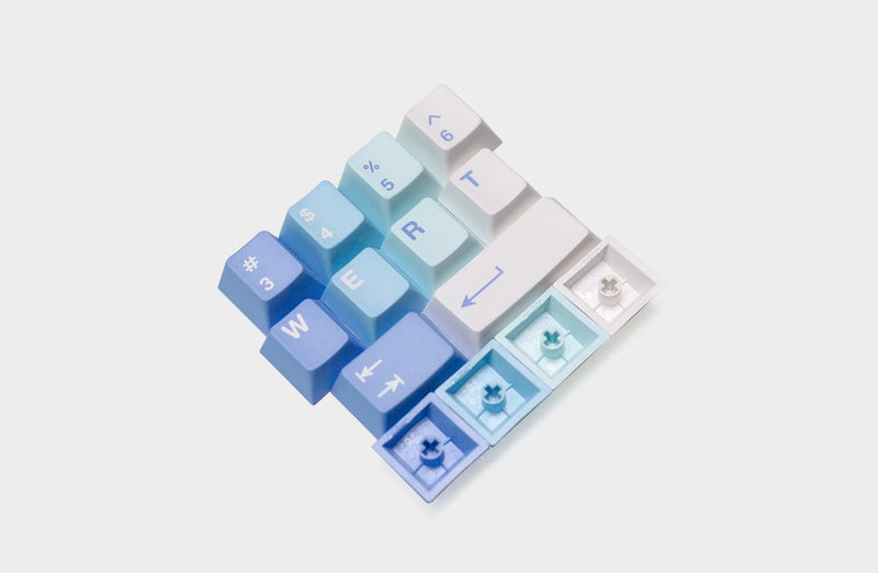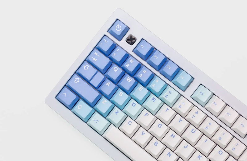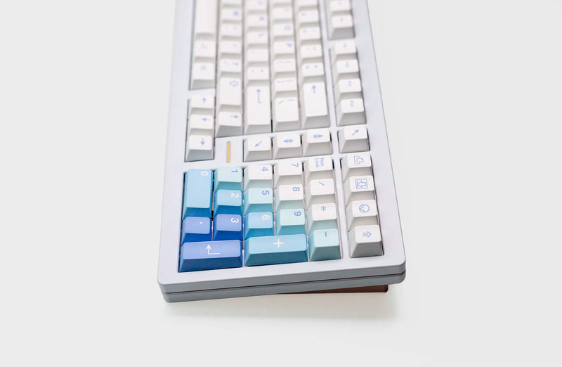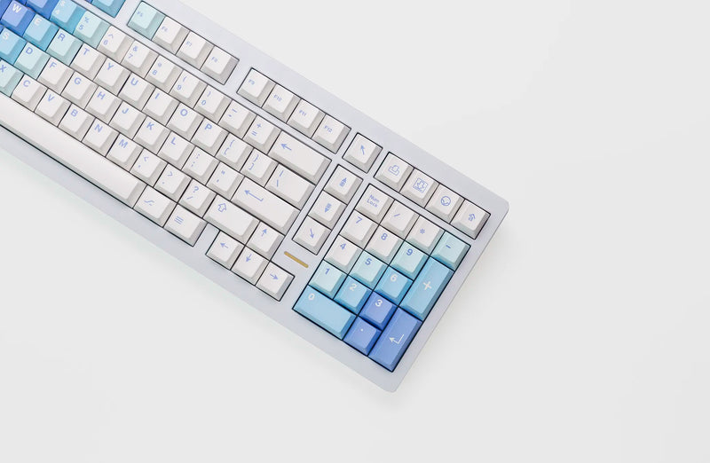 MW Yeeti Light is designed by the designer of GMK Yeeti for a reversed colorway of the set. With a blue and white gradient and yeti-themed novelties on thick PBT plastic.