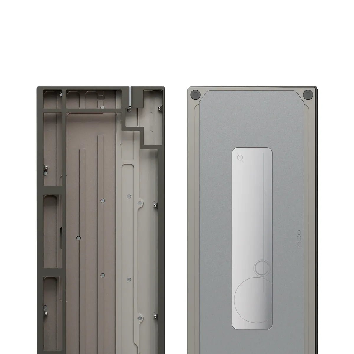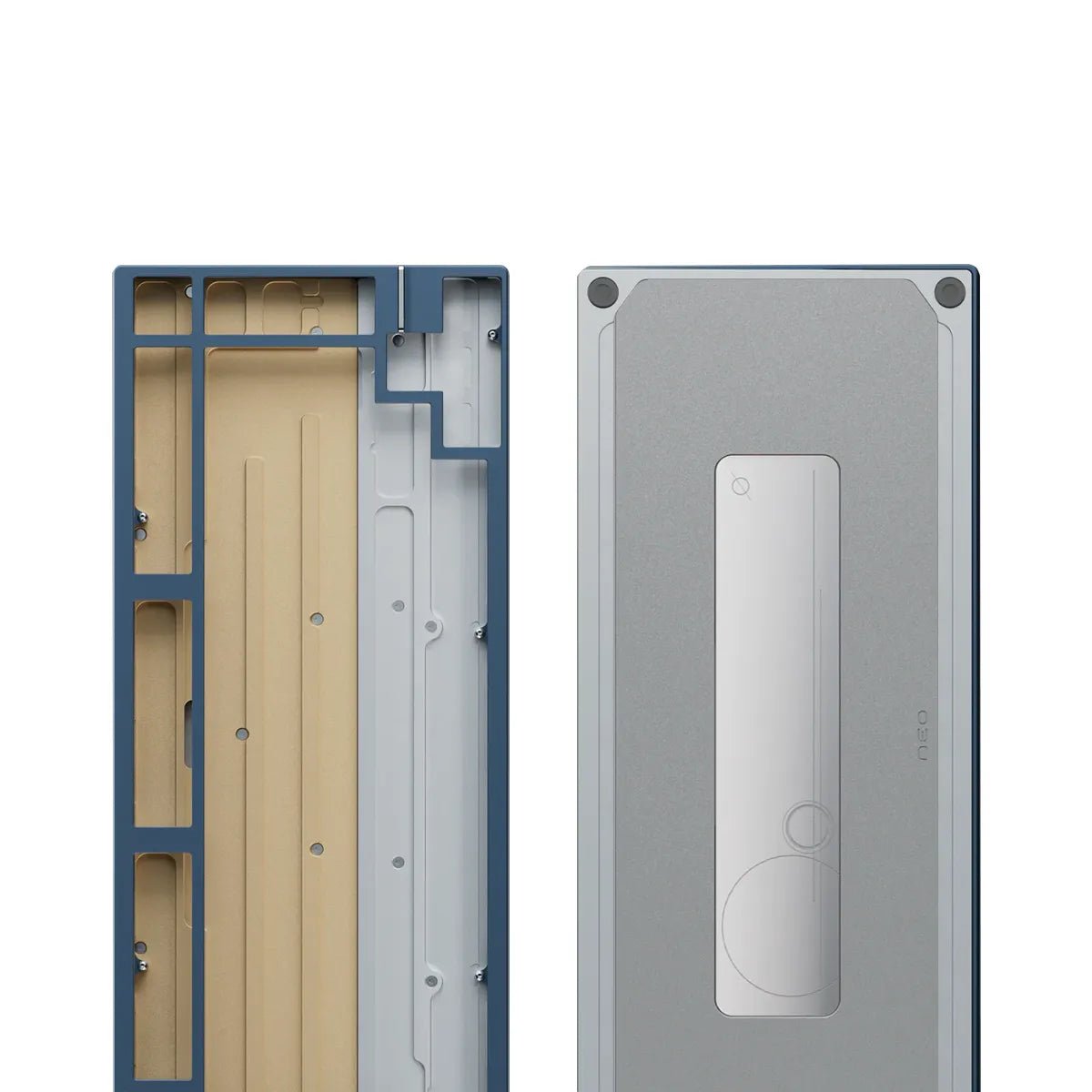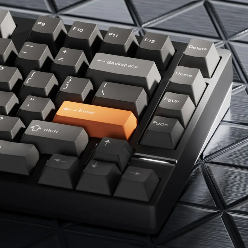 Minimalist in appearance yet meticulously engineered, the design centers around a mirror-polished stainless steel badge. Each surface is carefully ground, allowing the badge to sit nested within the keyboard with quiet precision, reminiscent of a platinum ring set in place. This is the NEO75.