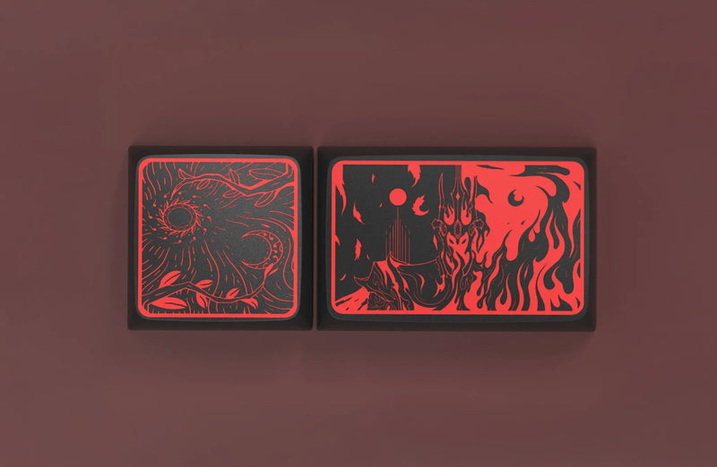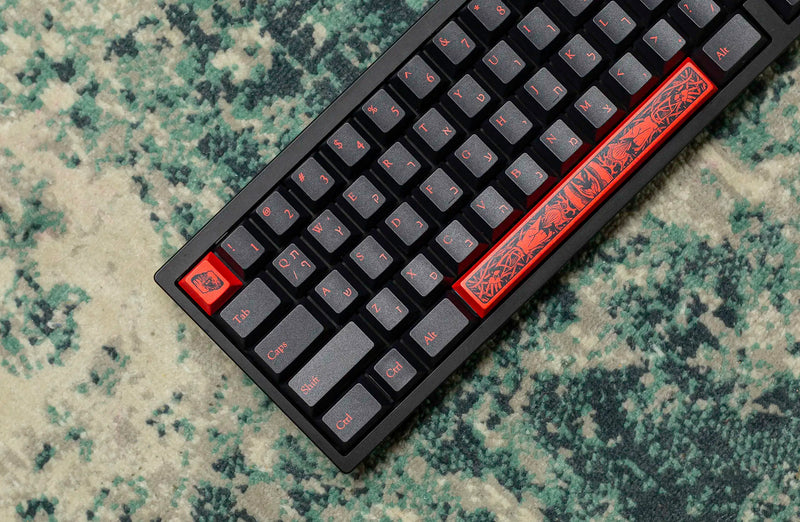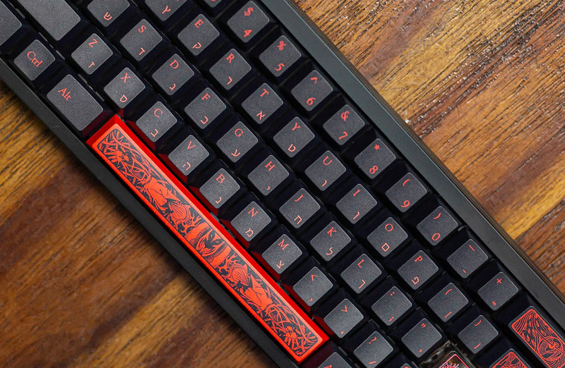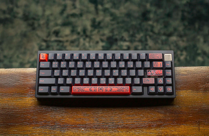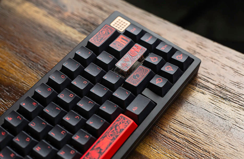 Chaosera Dark Covenant Keycaps are inspired by the anti-heroes found in stories and that has led to a set that takes the form of a "dark contract". From the intricate novelty artwork to the legend font and color profile, Dark Covenant showcases a truly unique keycap set.