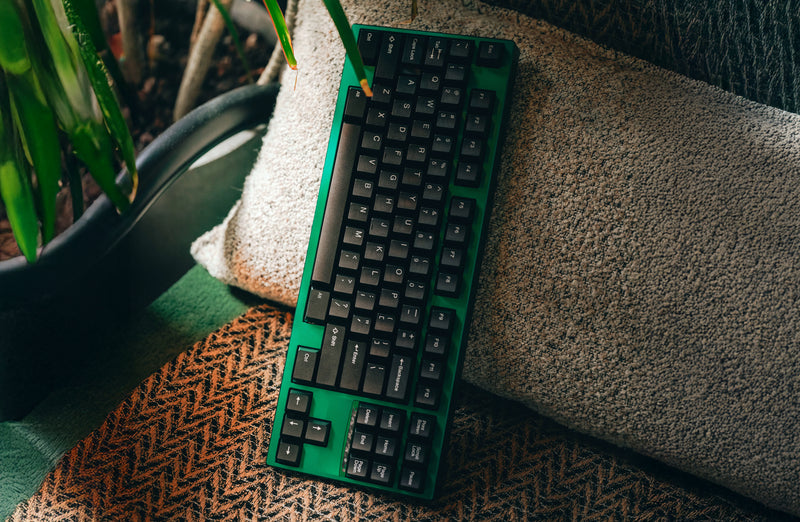 Sensy Seal 80 TKL combines minimal design with switch versatility by incorporating options for MX, Alps, SMK, Omro B3G, EC, and even Hi-Tek in a standard A87 layout. The Seal80 has a subtle yet complex design with its buffer system for a reduced front height and integrated force break and top mount buffer component that gives a superior typing feel.