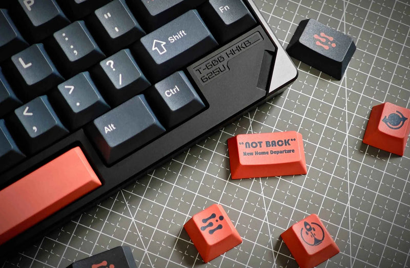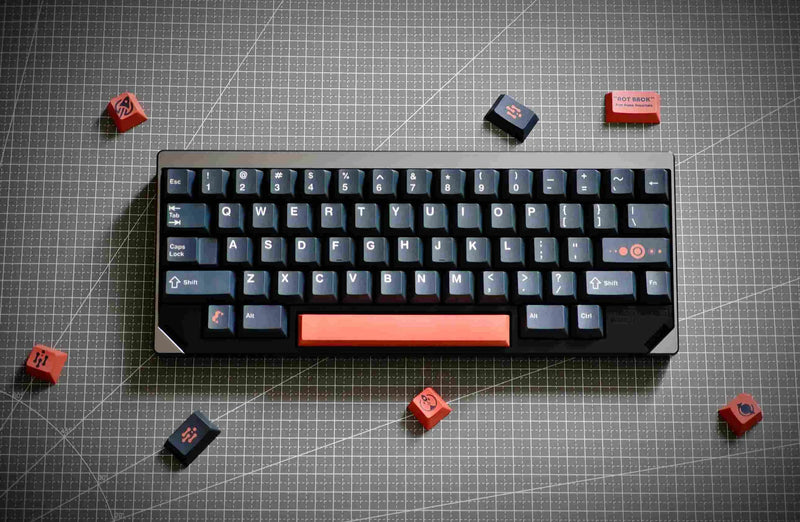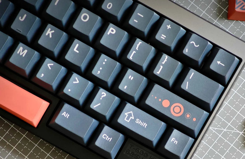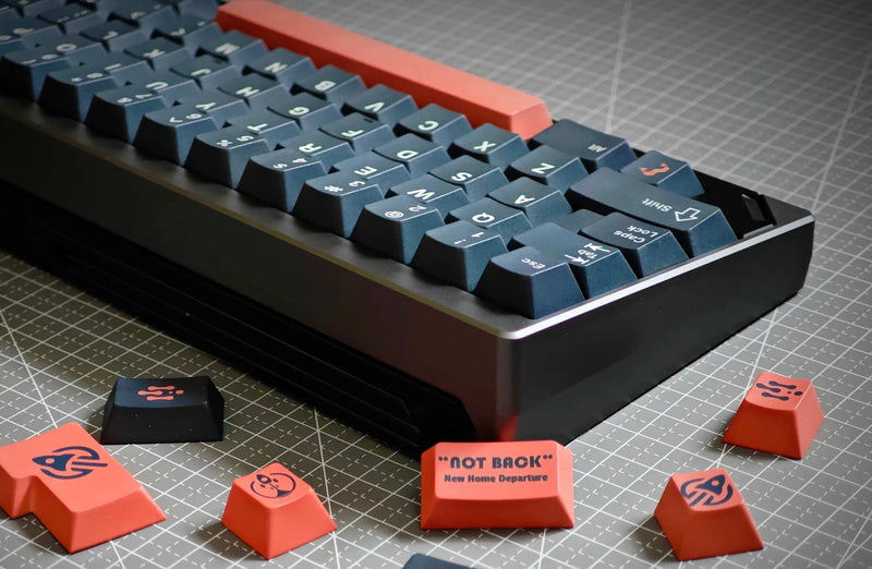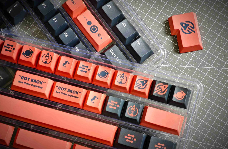 Vividkey Escape from Earth Keycaps are spaceflight inspired keycaps with a space blue colorway and orange accents.