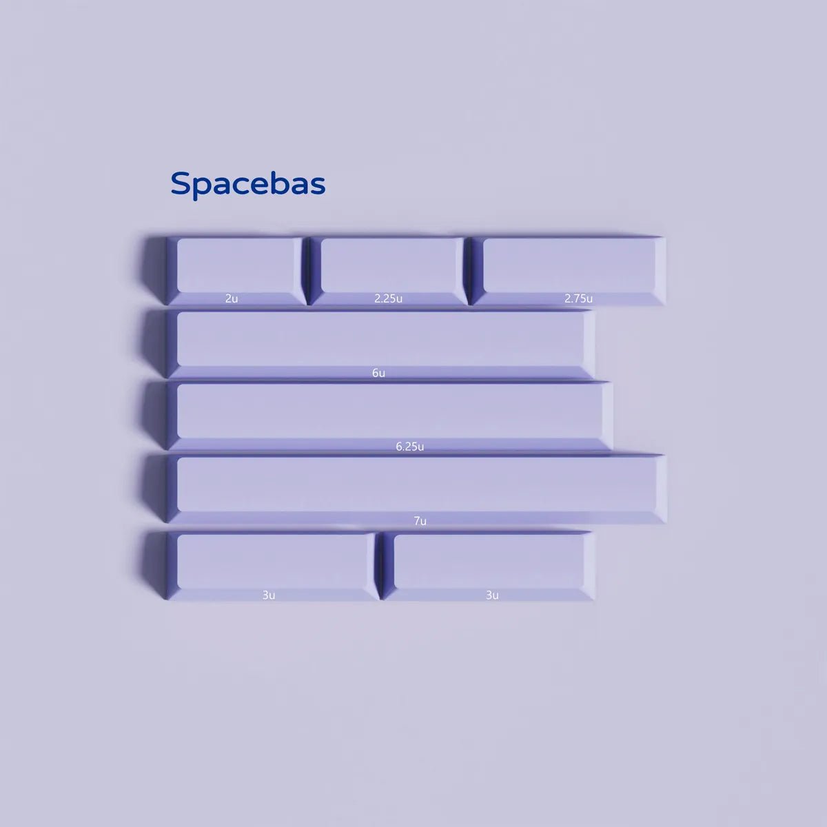 Light purple was chosen for the alphas to complement and highlight the brilliant Very Peri. Made with opaque ABS material, we wish to bring a lighter, crisper typing sound to match the sophistication that comes with the purple tones we have chosen.