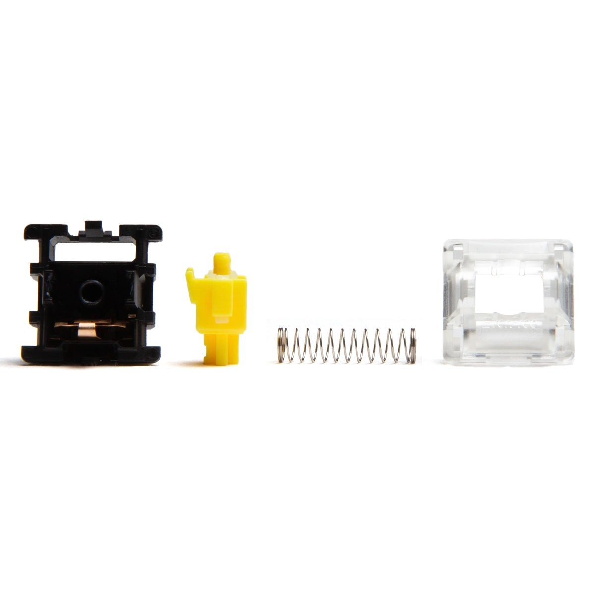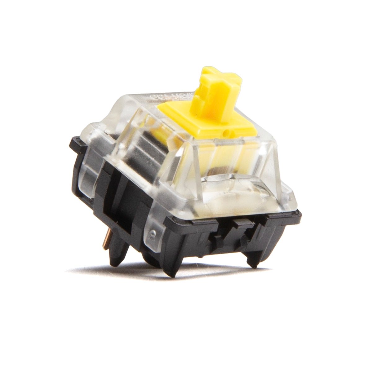 Gateron EF Silent Yellow Switches are a great, affordable option for a standard silent switch with a full, 4.0mm travel and classic PC, nylon, and POM material combination. It is able to silence the switch with silencing pads on top and bottom of the stem rails to reduce noise on top-out and bottom-out.