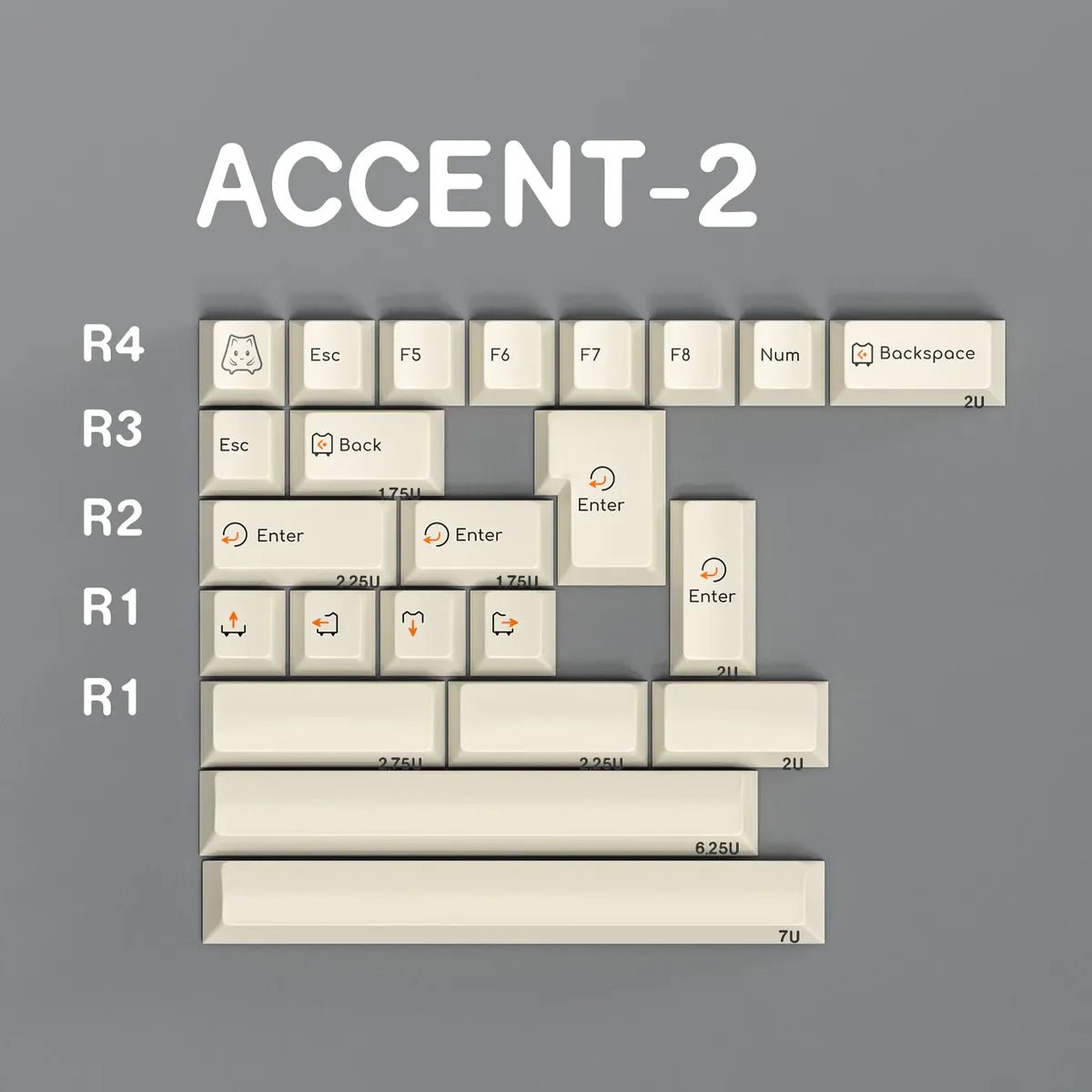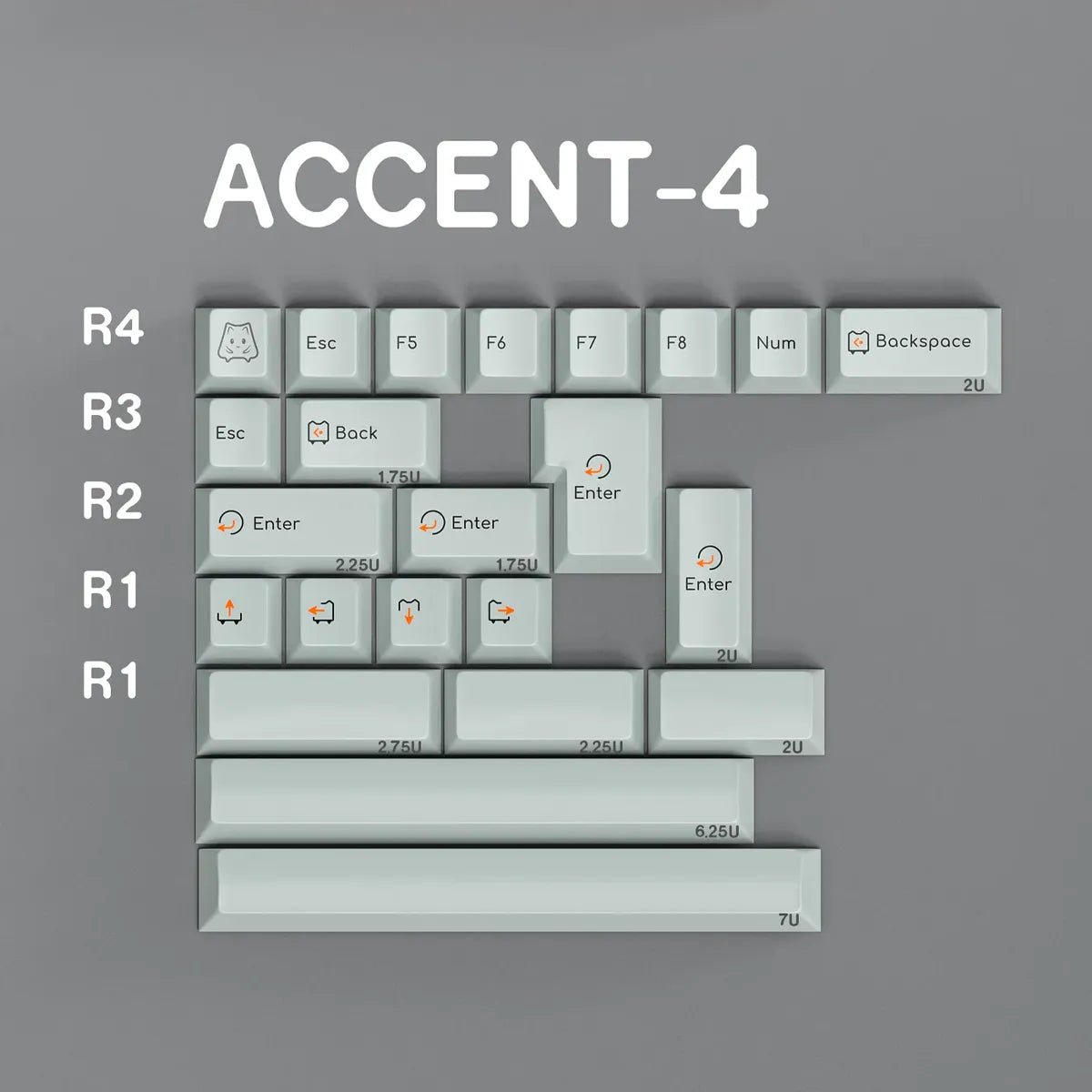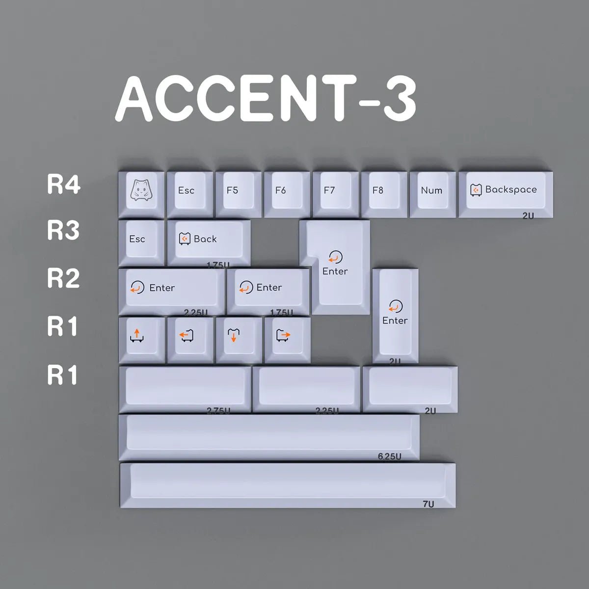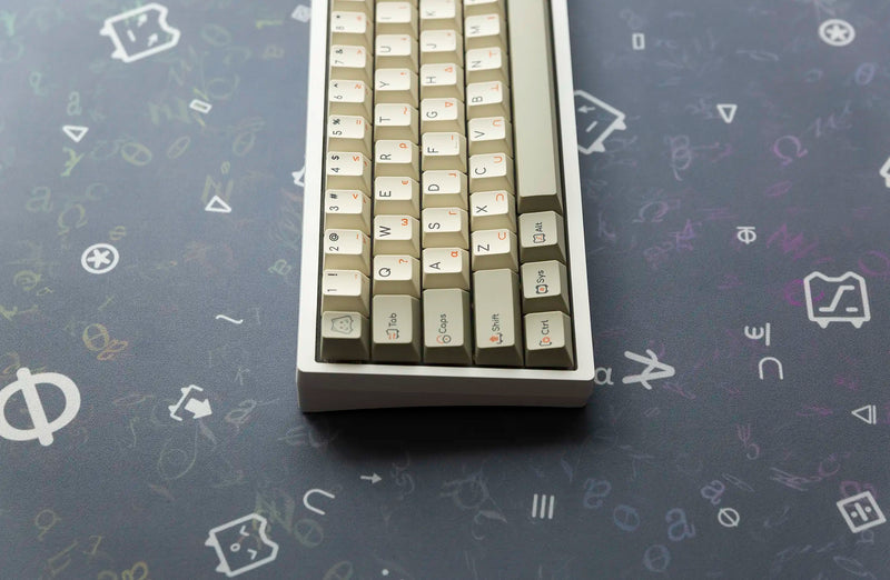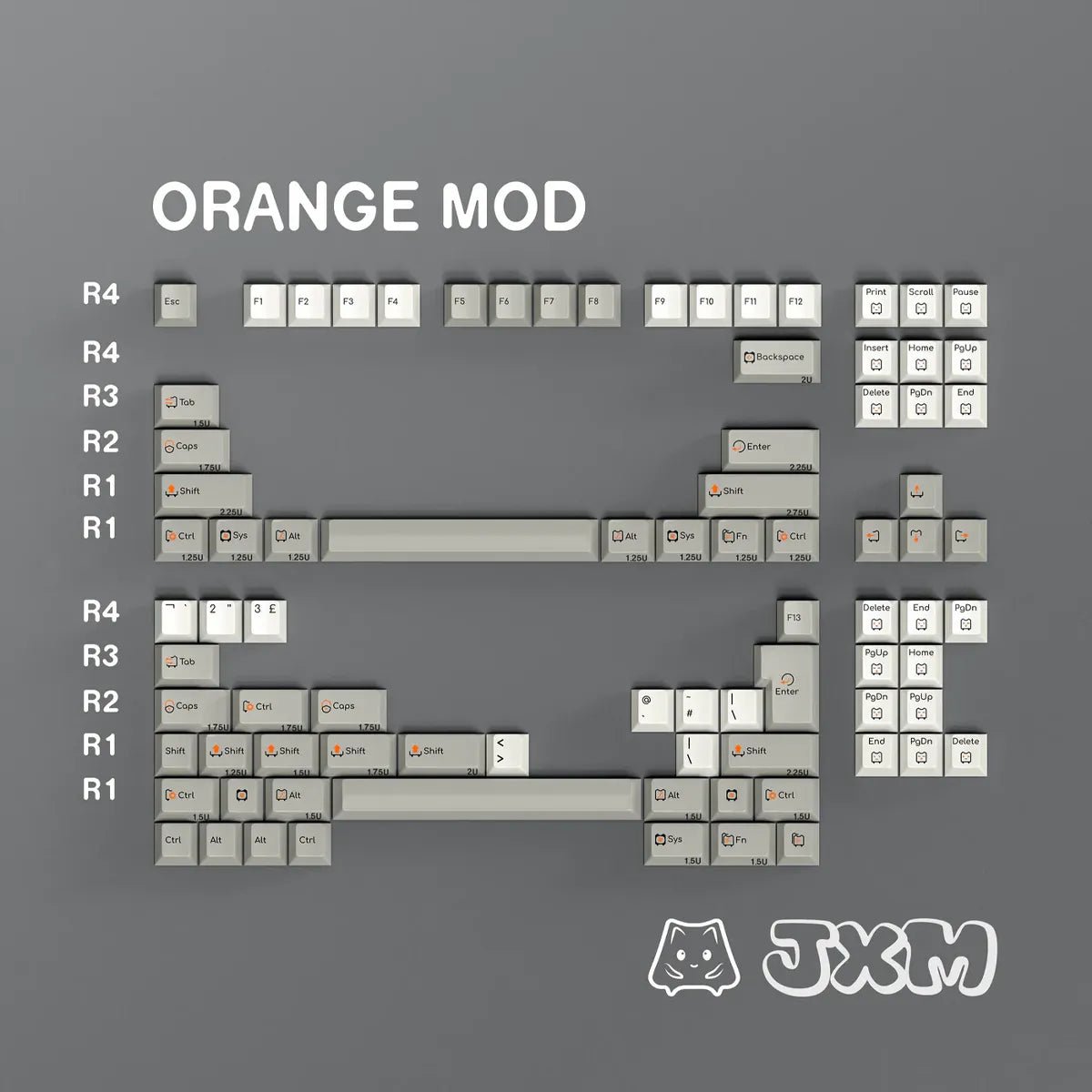 AlohaKB JXM Keycap Set is designed by Ovie Grant with his inspiration for the set below. It features cream colored alphas with grey mods and a choice of adding a flair of orange on the sublegends/icons. Vibrant accent kits are also available as well for a pop of color.