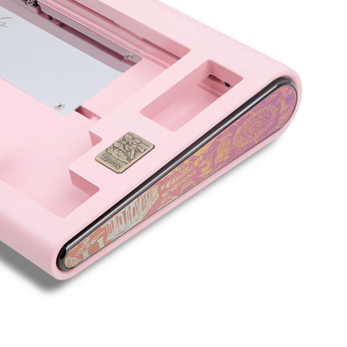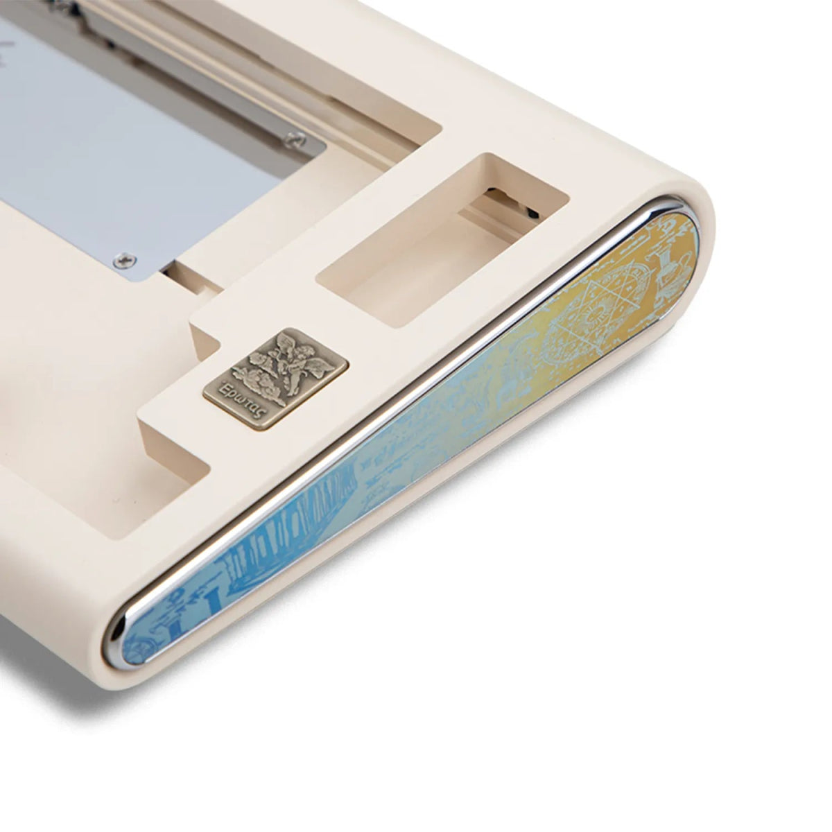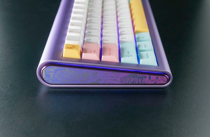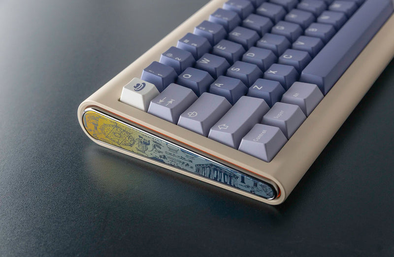 Chaosera Cupid65 Keyboard expands on Chaosera's theme of mythology and includes Cupid. The Cupid theme can be noted in a few design aspects of the keyboard from the curvy exterior case and copper badge, to the titanium anodized plating. Matching wrist rests with titanium anodized plating are also available for a complete look.