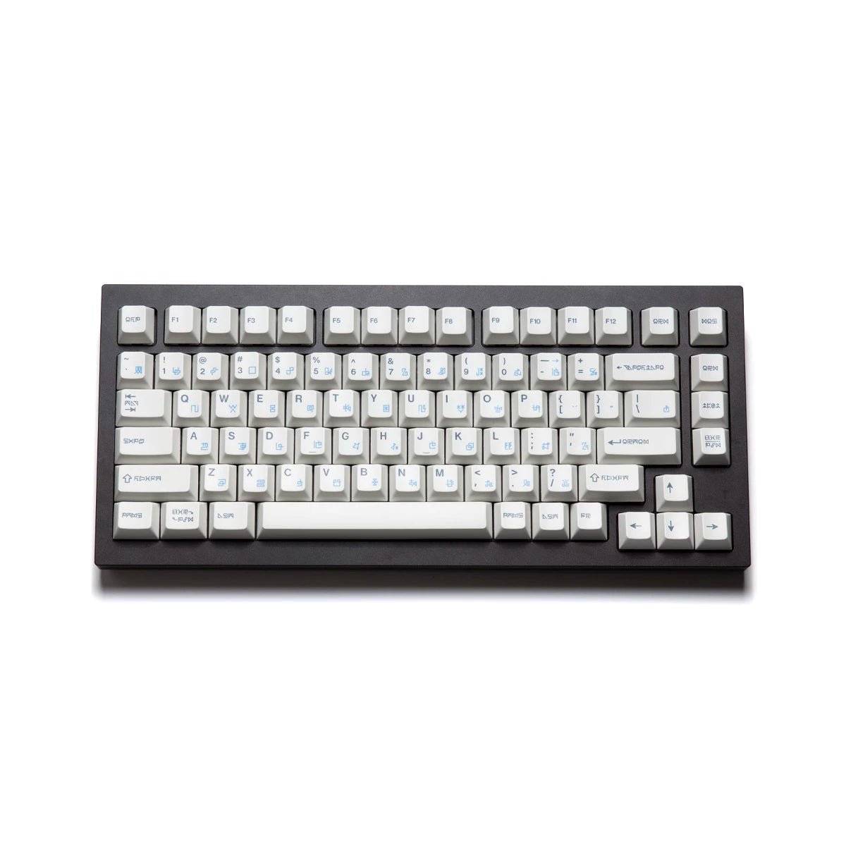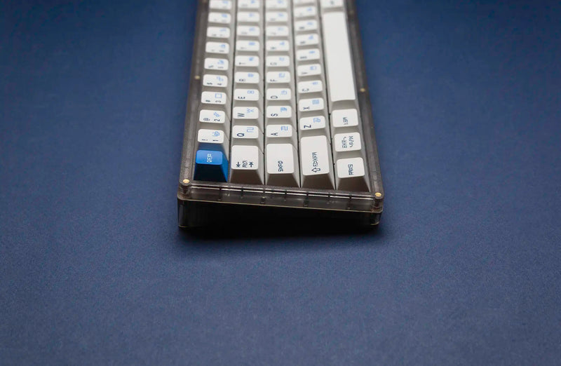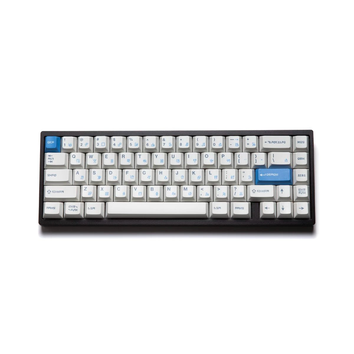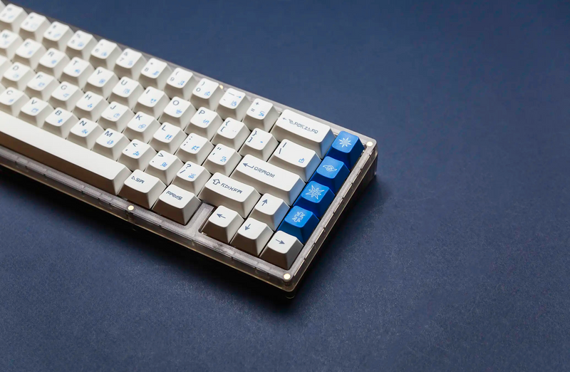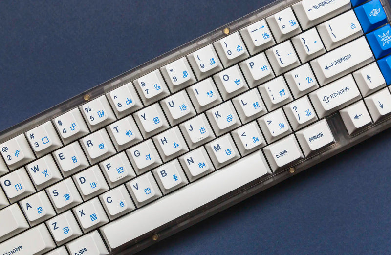 ePBT Divine Plan is the latest keycap set manufactured by Enjoy PBT and designed by York. Taking inspiration from a popular childhood show, this keycap set features white keycaps with blue tones for legends representing the designer's favorite digital monster. The sublegends are text symbols featured directly from the show.