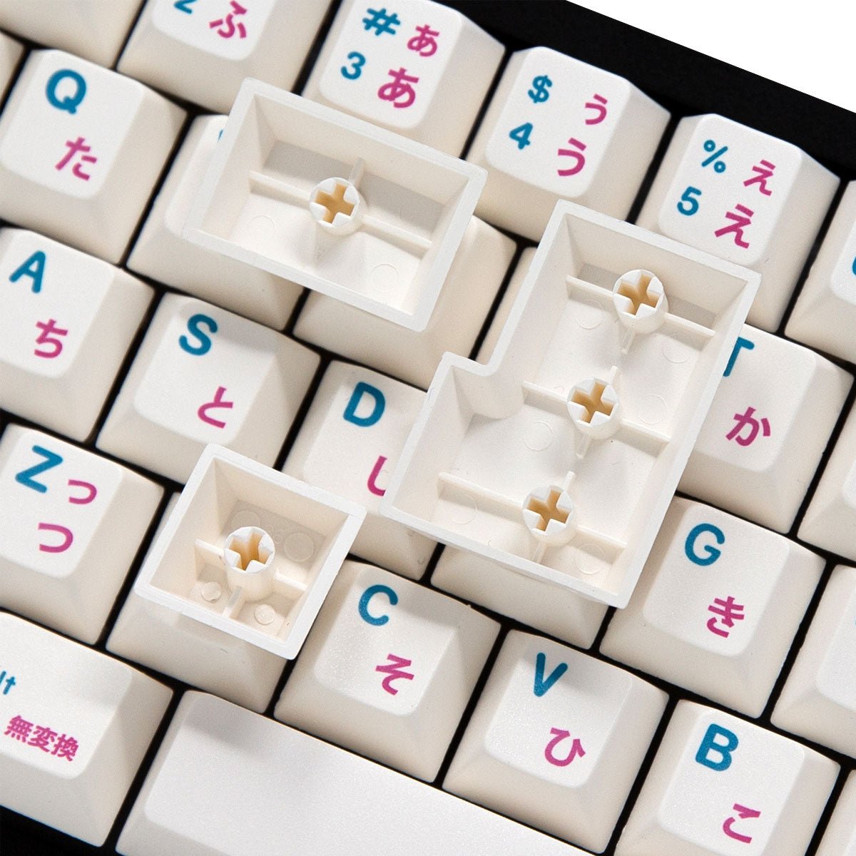 EnjoyPBT Sushi Keycap set is dye sublimated to showcase its rich teal blue legends on top of the pink Japanese accents. This sushi inspired set is manufactured with PBT plastic.