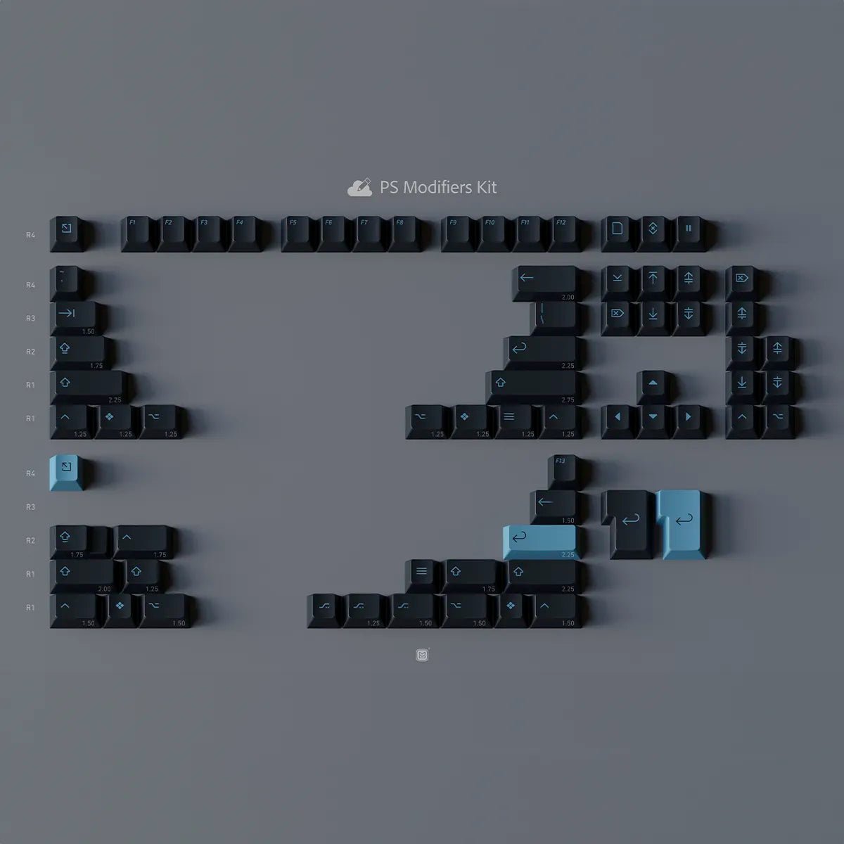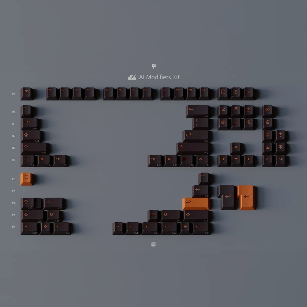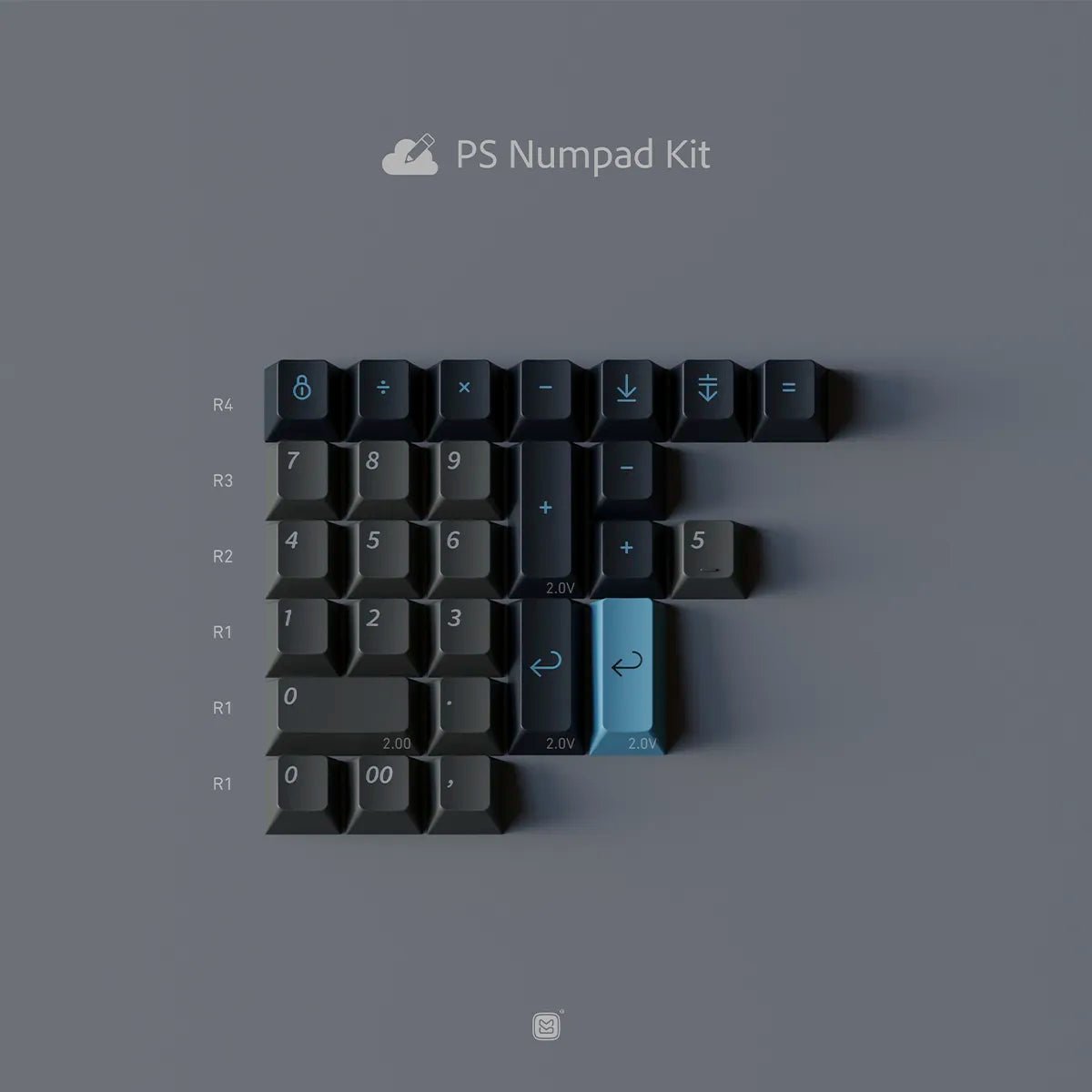 Introducing ePBT Creative Studio, a keycap set inspired by and featuring sublegends for your favourite creative tools. The set comprises dark grey alpha keys and two themed modifiers sets: a sky blue and navy PS theme, and an orange and maroon AI theme. ISO-UK is supported in the base alphas kit, and NorDe support provided via an extension kit. An extensive Nomad kit provides support for 40% and ortholinear keyboard layouts when paired with either alphas kit.