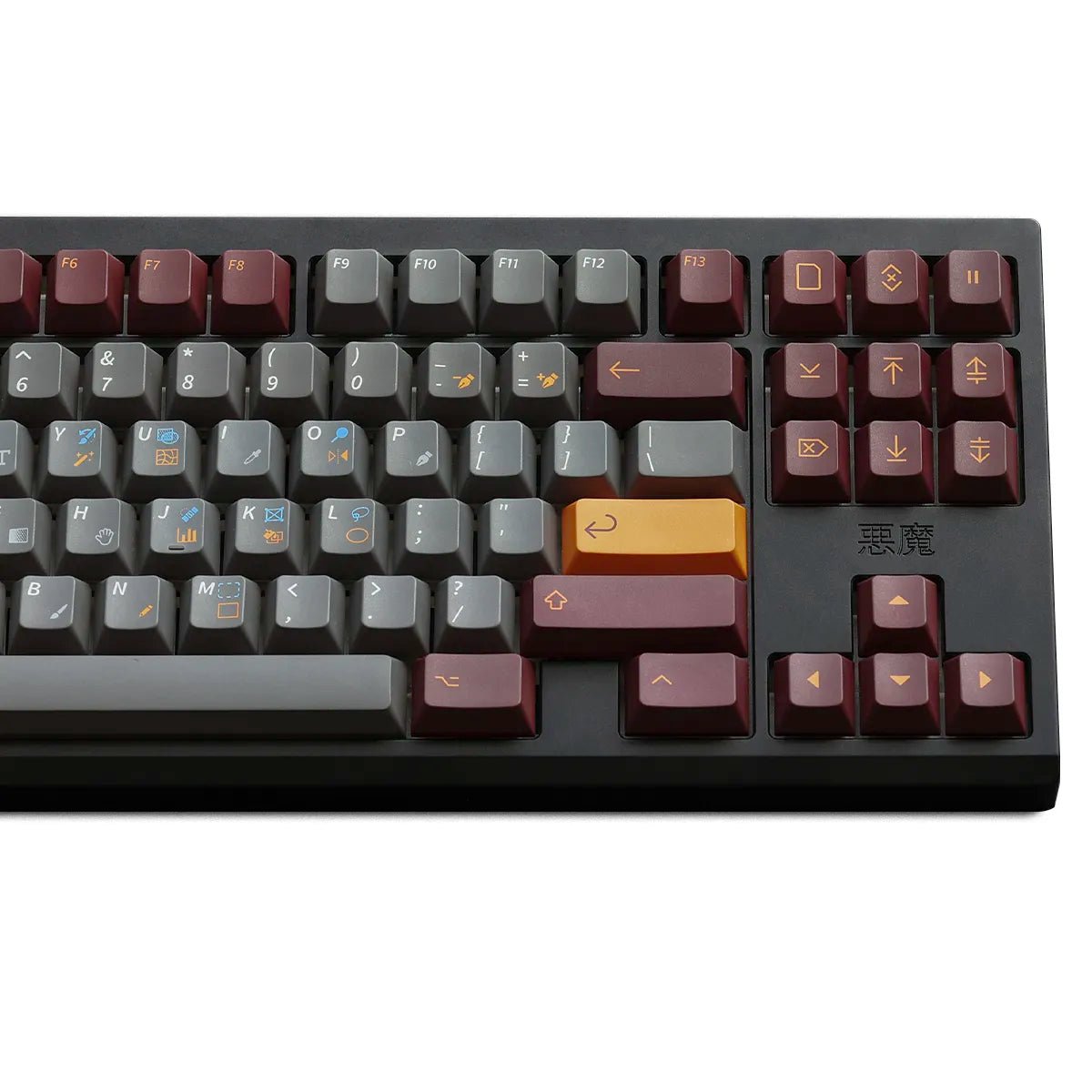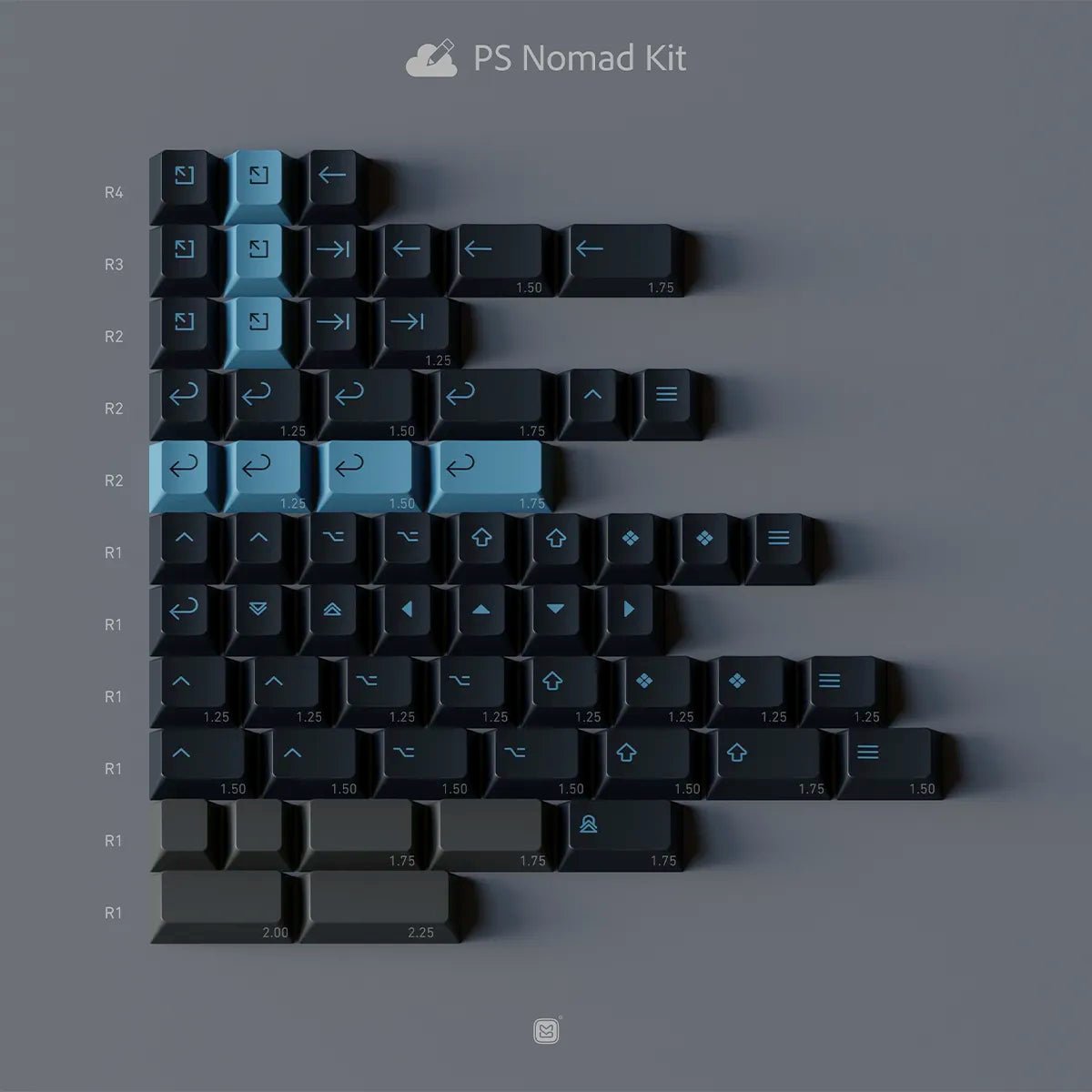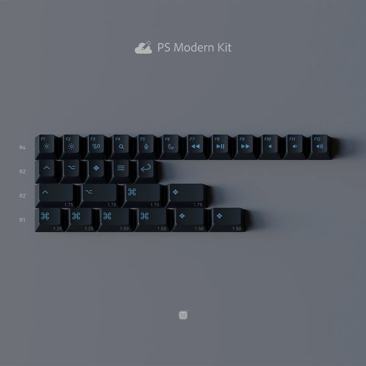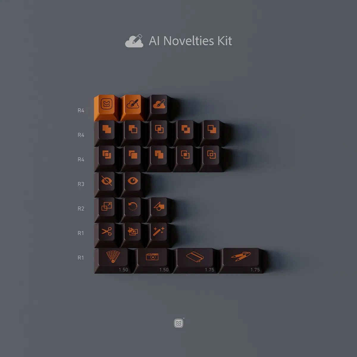 Introducing ePBT Creative Studio, a keycap set inspired by and featuring sublegends for your favourite creative tools. The set comprises dark grey alpha keys and two themed modifiers sets: a sky blue and navy PS theme, and an orange and maroon AI theme. ISO-UK is supported in the base alphas kit, and NorDe support provided via an extension kit. An extensive Nomad kit provides support for 40% and ortholinear keyboard layouts when paired with either alphas kit.