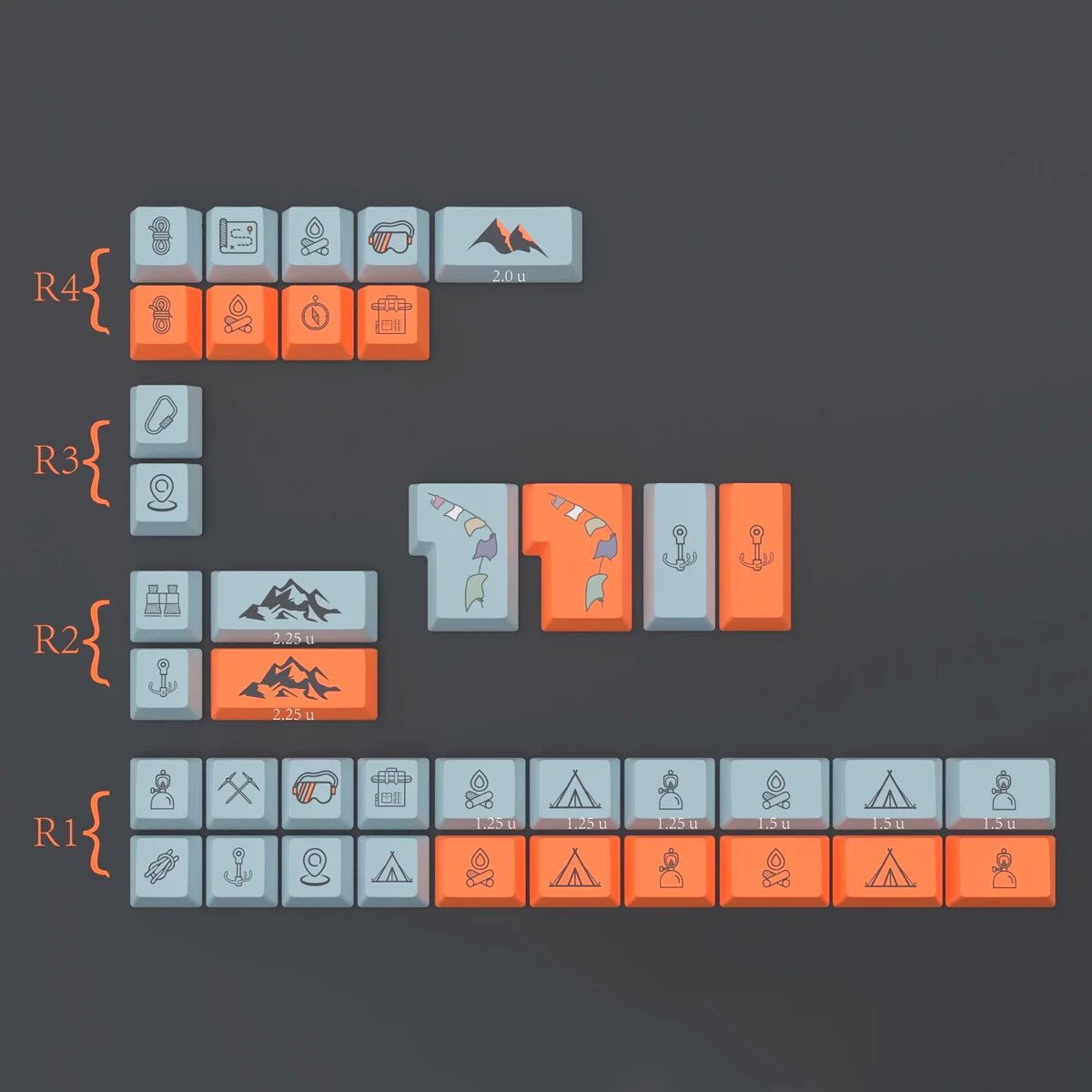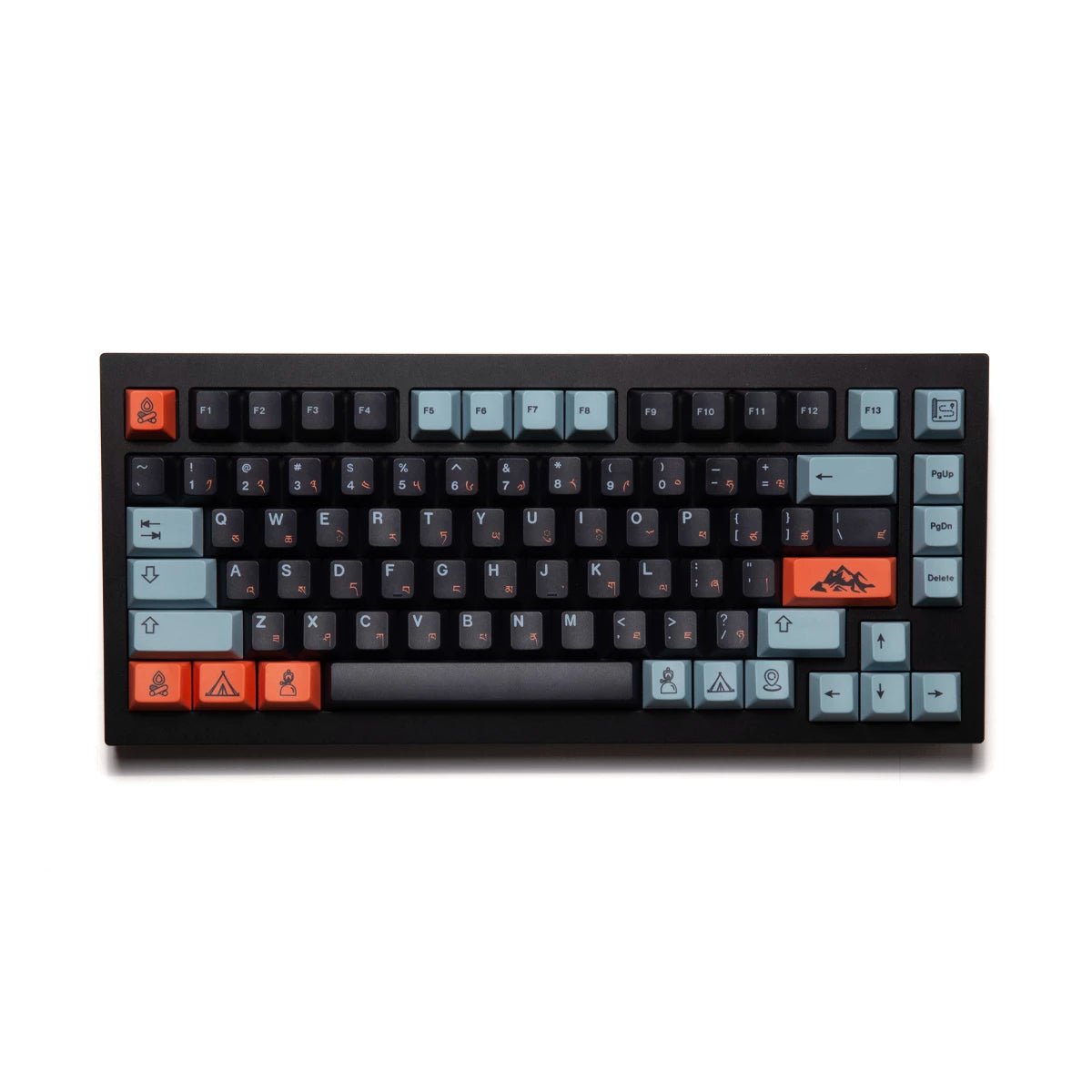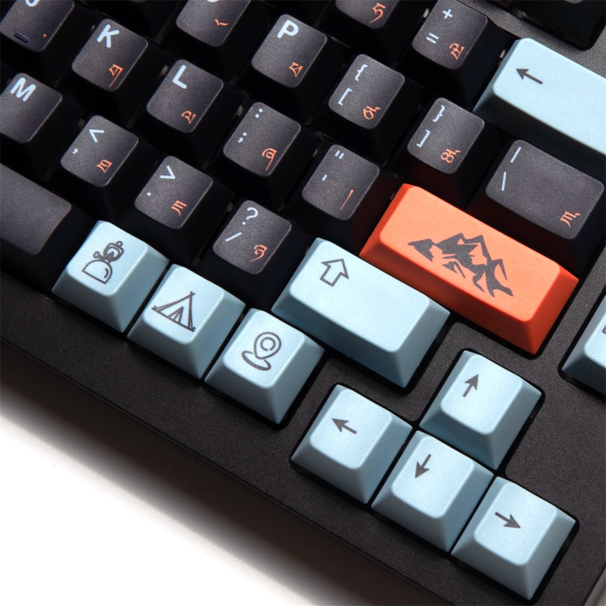 EPBT Flaming Ice Keycaps are inspired by the Meili Snow Mountains during the sunrise. The golden sunrise on the snow-capped peaks of the mountains with the back-drop of a dark blue sky is an astonishing sight which these keycaps personify.