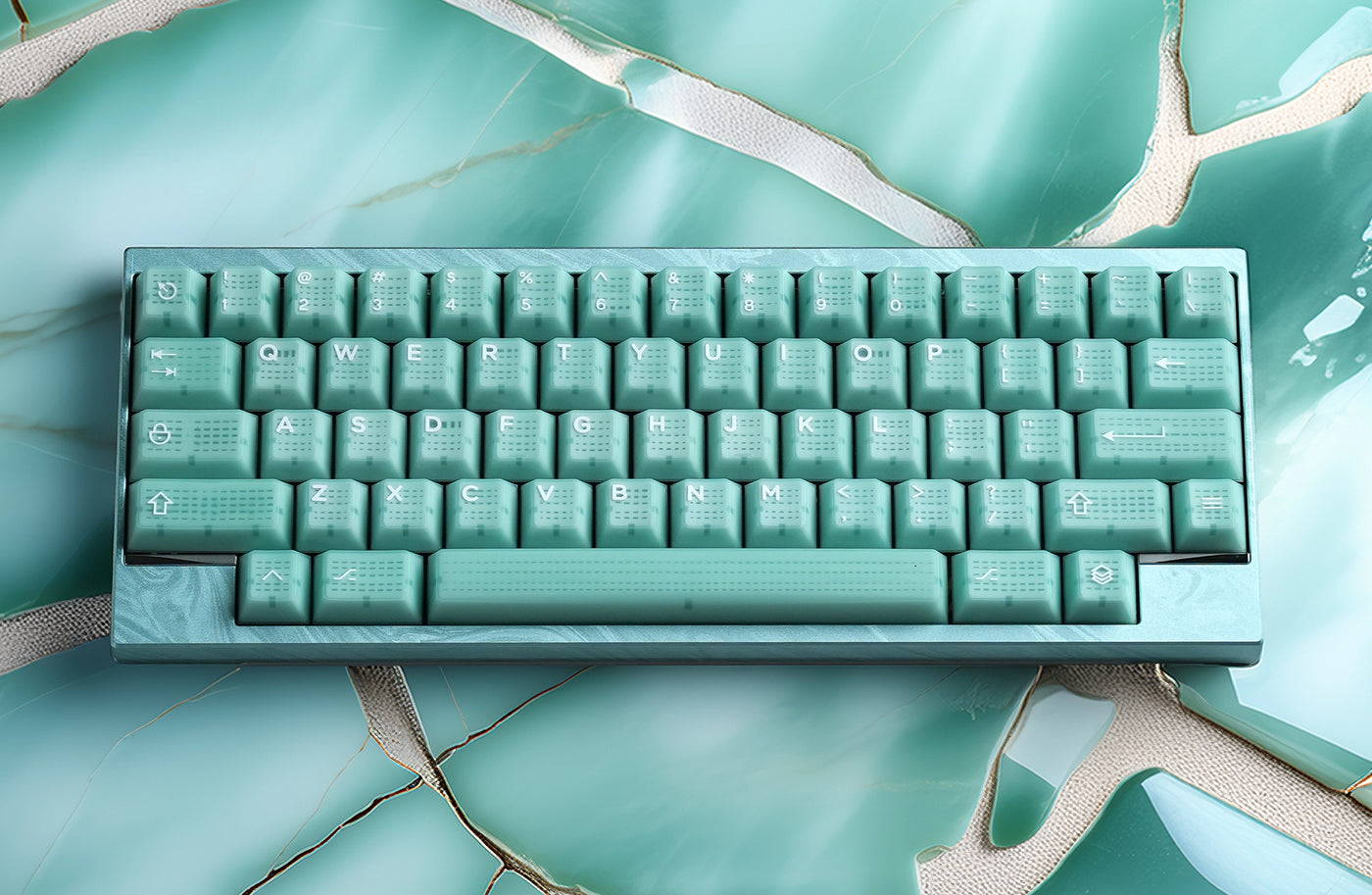 The DK1-60 showcases many unique design elements from the "Marblano" surface finishes for that flowy effect, thin side bezels, and a short front height. It also has many case and weight options so you can go for that satisfying brass or copper bottom case sound.