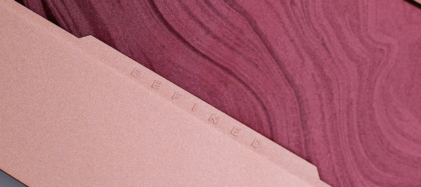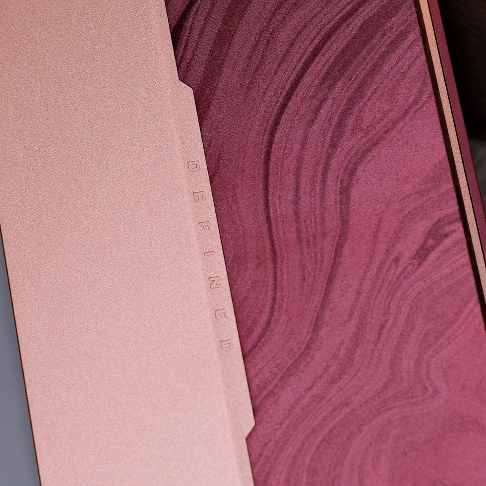 On the back, generous chamfers enhance the layering, and the recessed DEFINED logo sits within the counterweight cutout as a refined focal point.