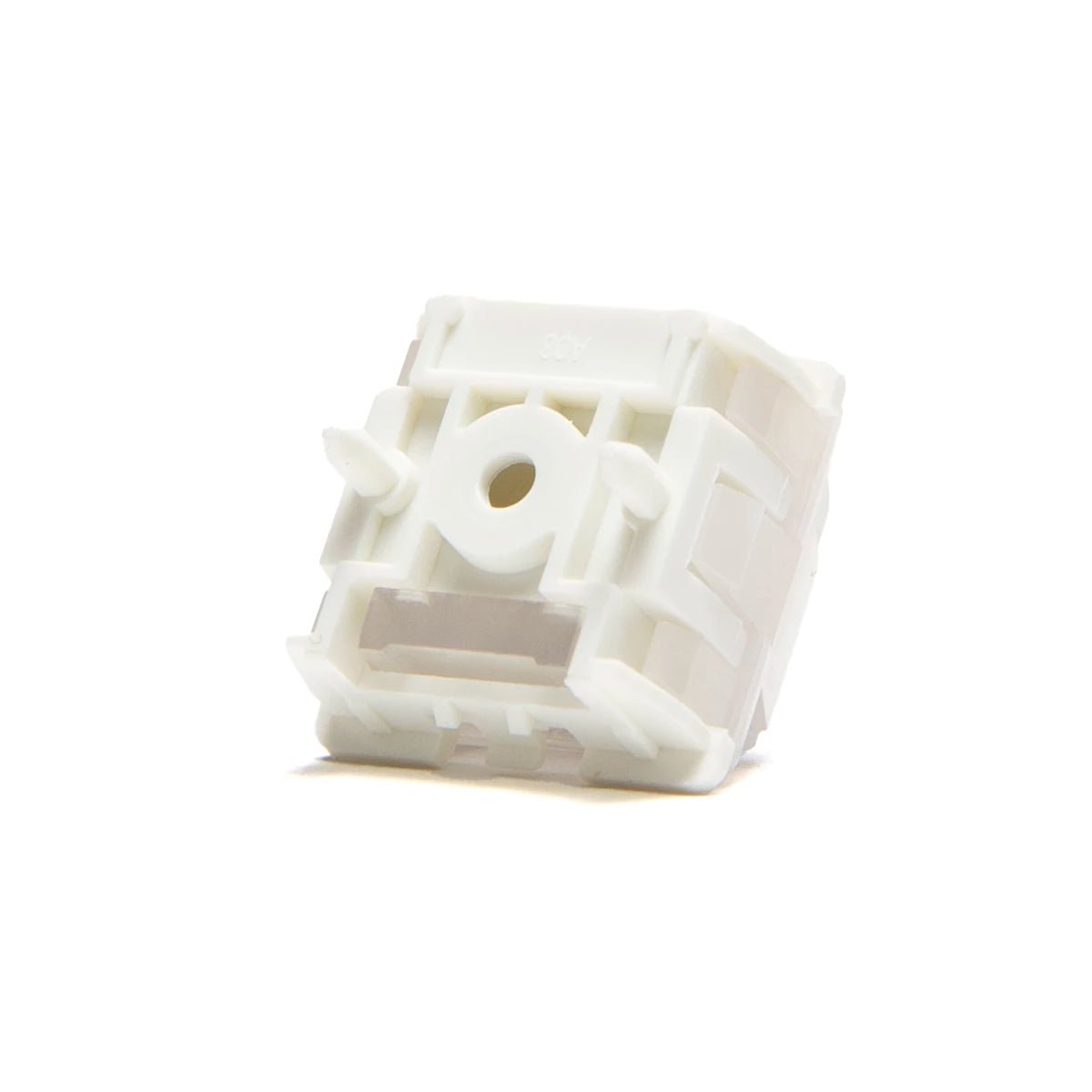 Geon Raw HE Switches feature a mold designed by Geon for high precision due to its low mold cavities. The switch is a pole bottom-out, shortened 3.4mm travel with a through-hole bottom housing.