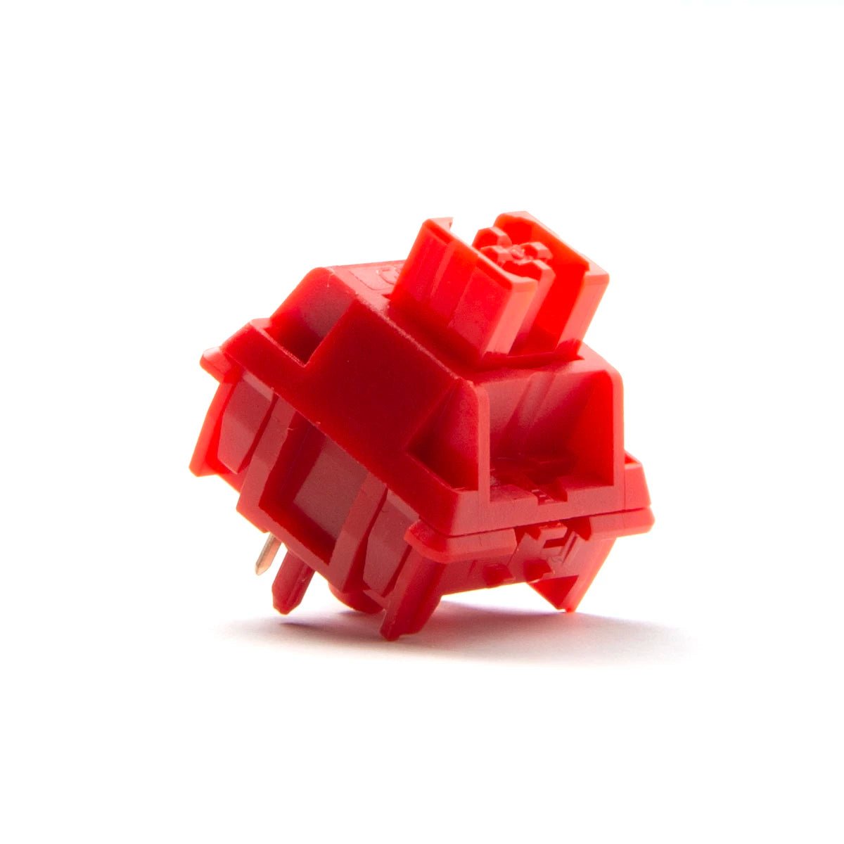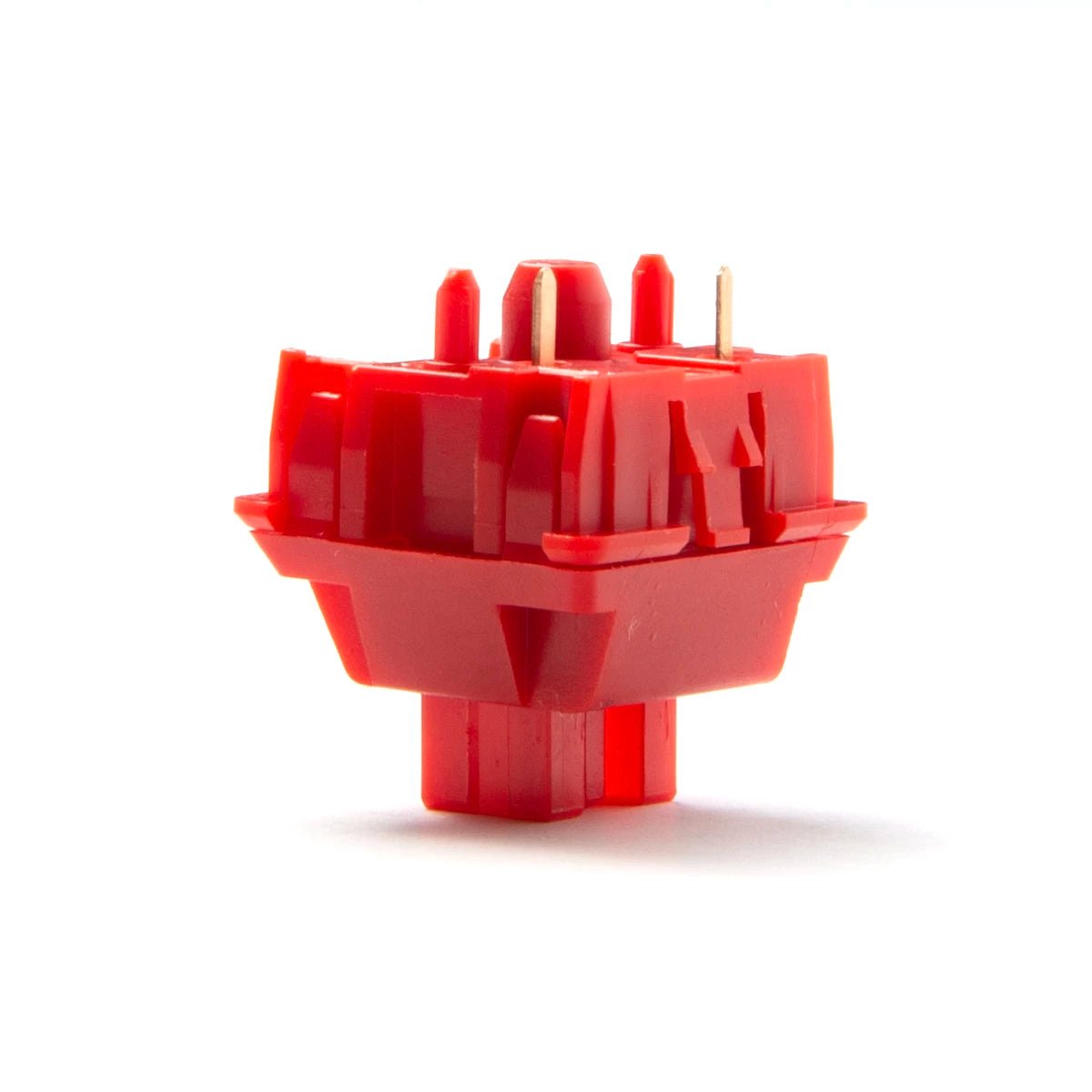 Haimu x Geon HG Red Switches are a collaboration between the two with manufacturing by Haimu and design by Geon. The HG Red Switches are silent linear switches with small cutouts in the top and bottom-out for a more muted typing experience. It is also one of the first to utilize PTFE plastic as well as Korean KOS stainless steel springs which greatly reduces spring ping.