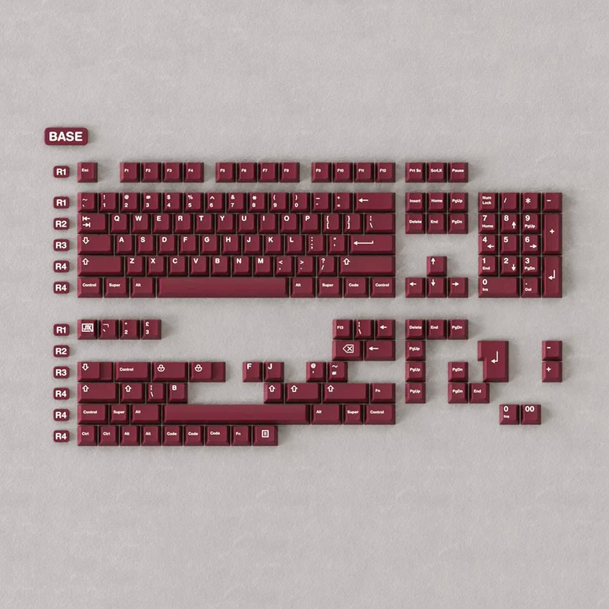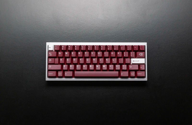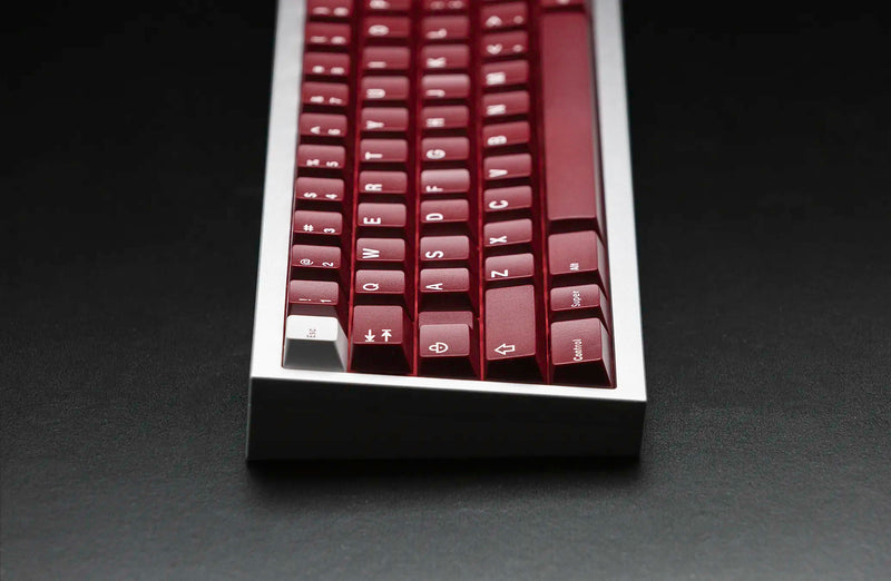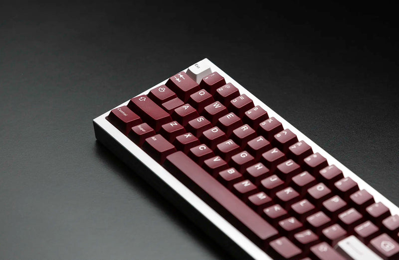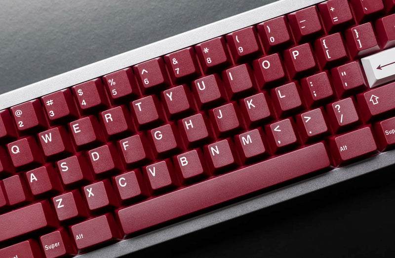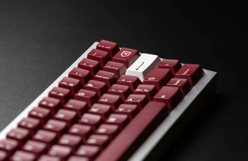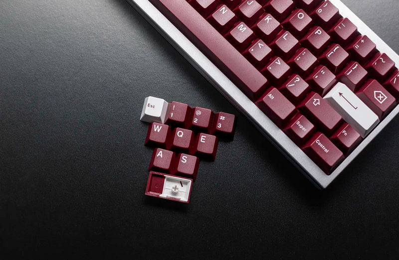 JTK Ride Keycaps utilize a wine red base with white legends for a crisp set that will work well with any board. JTK Standard Keycap Trays are included as the packaging of this set which offers more value and a great, reusable storage tray.