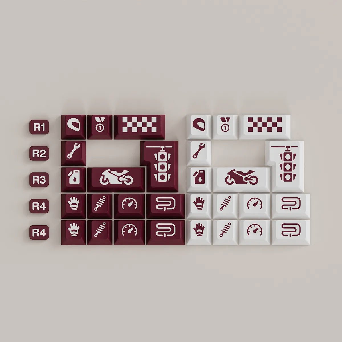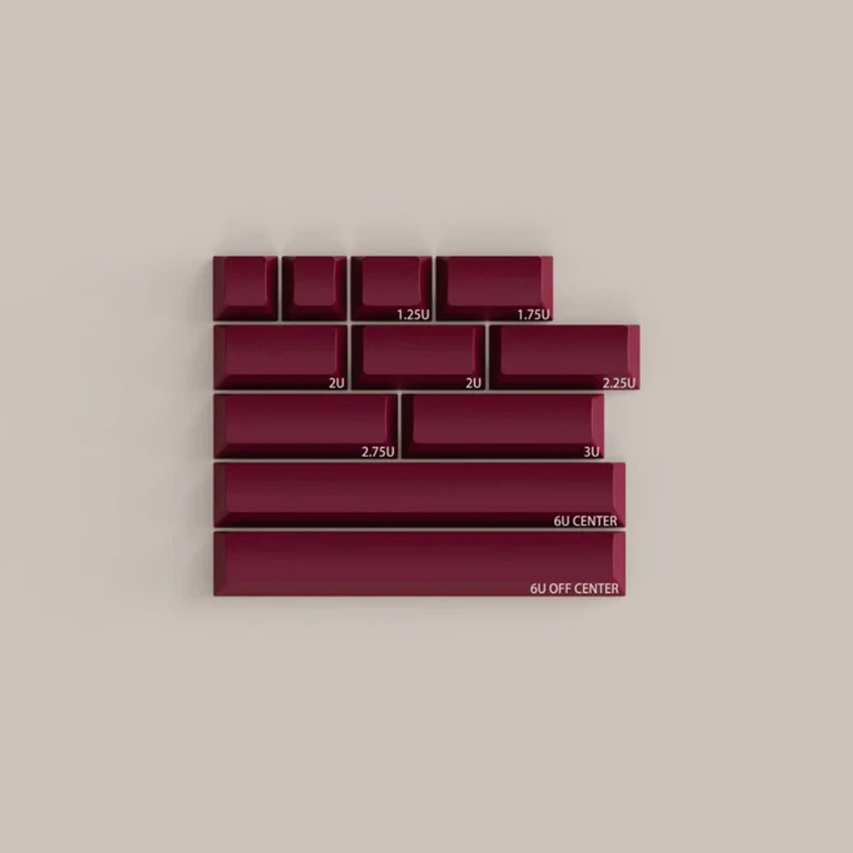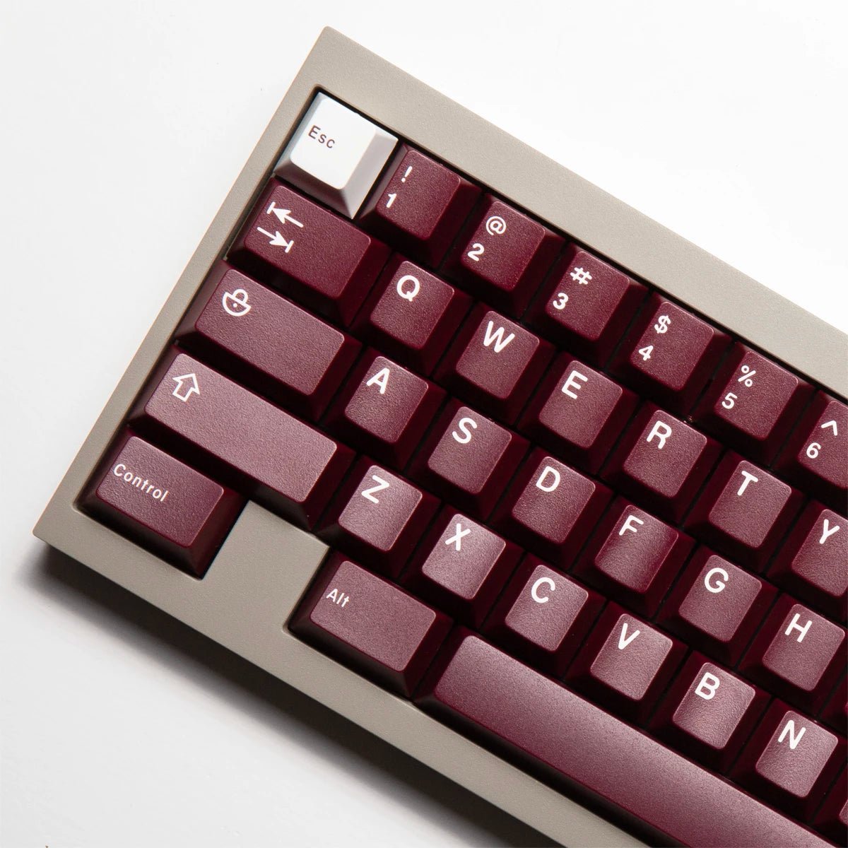 JTK Ride Keycaps utilize a wine red base with white legends for a crisp set that will work well with any board. JTK Standard Keycap Trays are included as the packaging of this set which offers more value and a great, reusable storage tray.