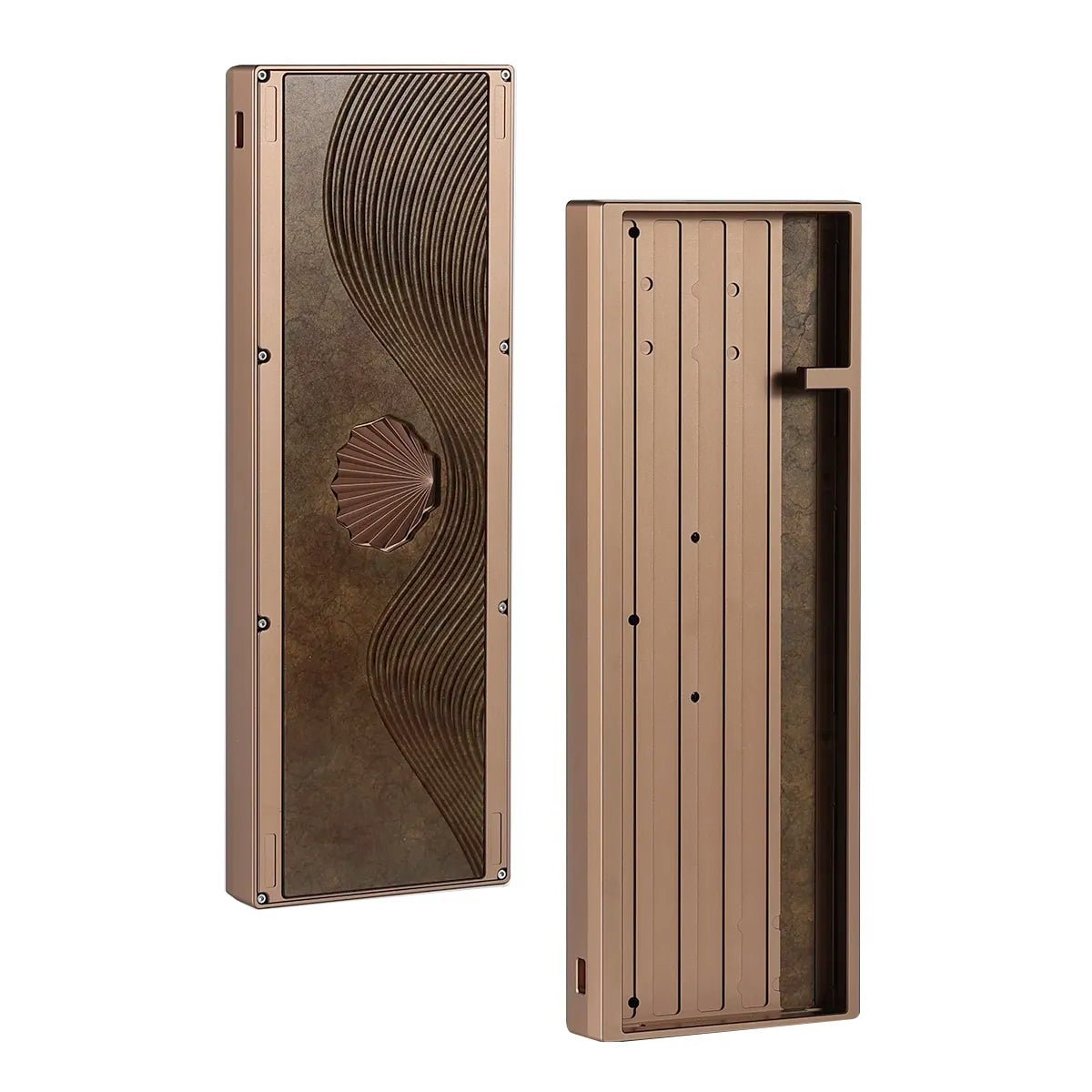 - Aluminum case will be paired with a patina finished brass weight with clear coating