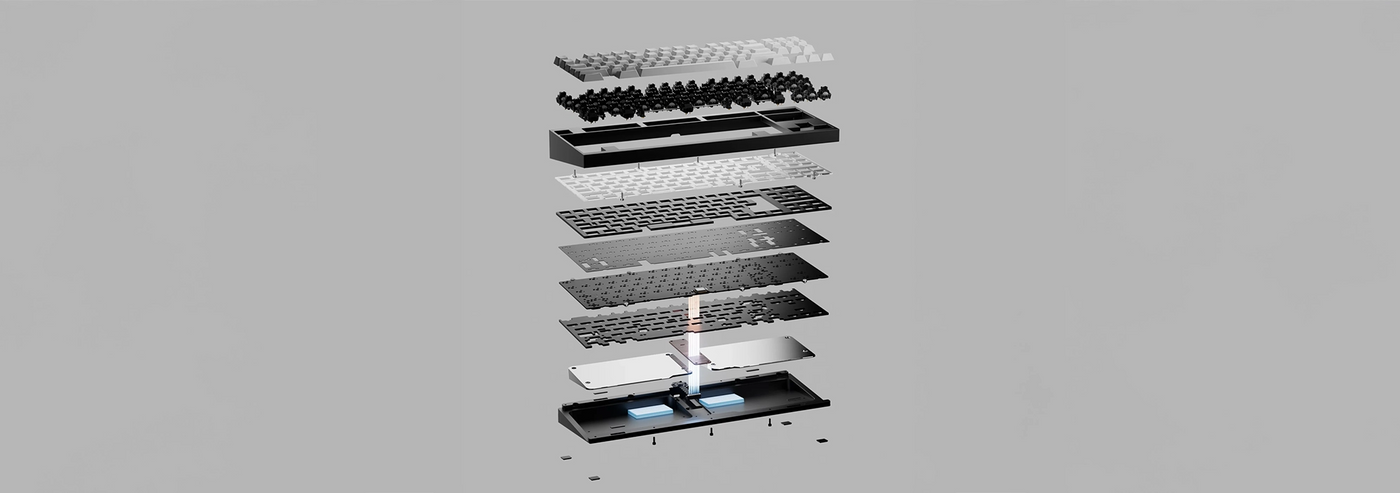 The PCB gasket mount follows a top mount style support pattern to deliver a soft, bouncy, flexible typing feel. Pair it with a solderable PCB for a plateless build that maximizes flex and brings out a deeper, more distinctive sound.