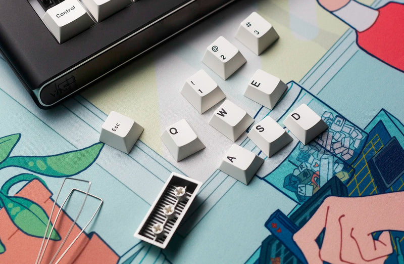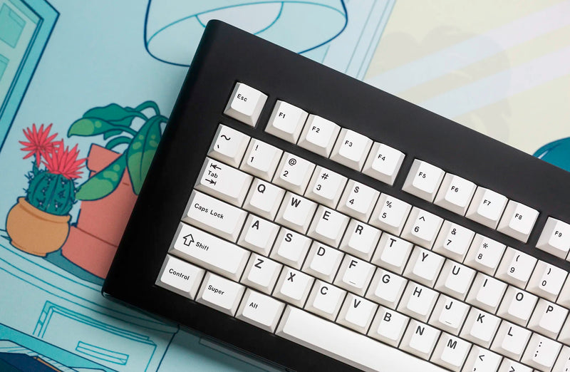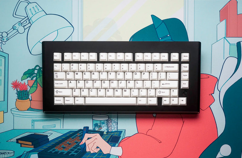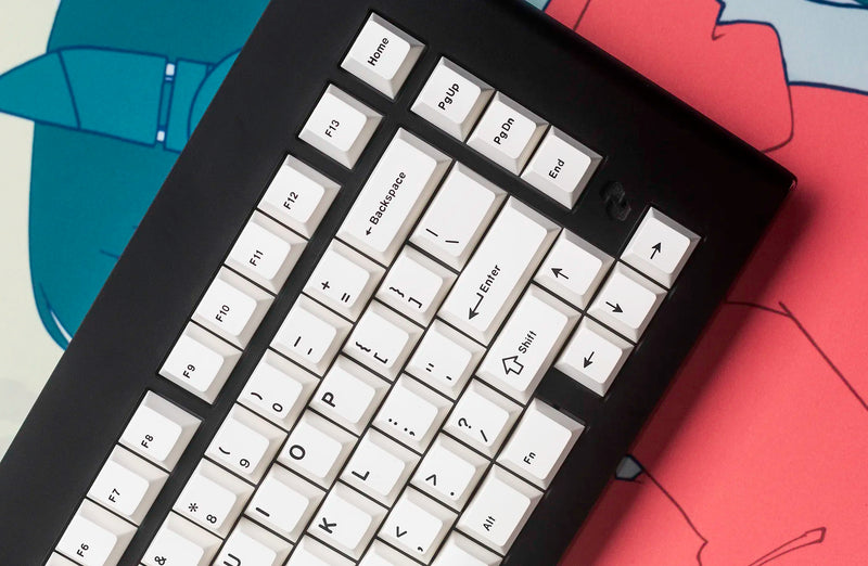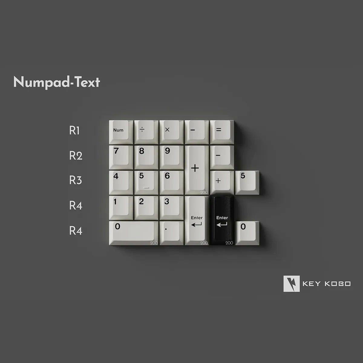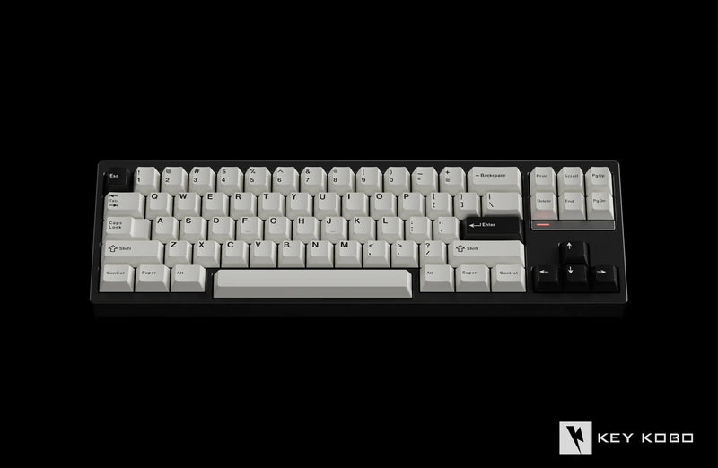 Keykobo BOW Keycaps are Keykobo manufactured black legends on a white base (black-on-white) keycaps. With optional black accent pieces and pairs well with the RainBow and RainWoB extension kits.