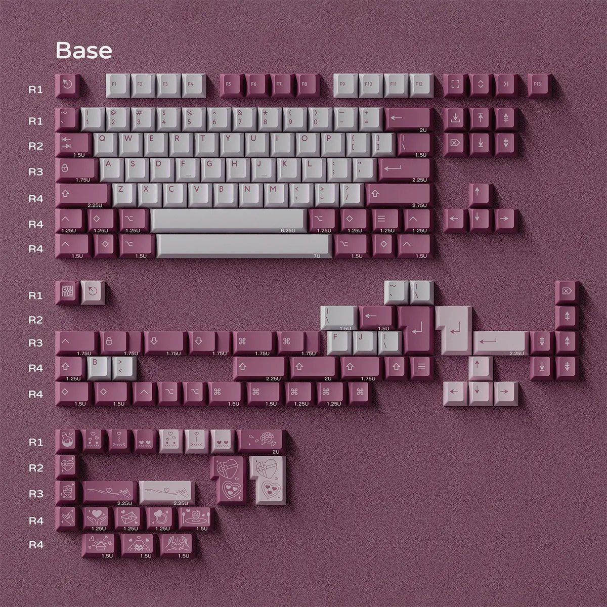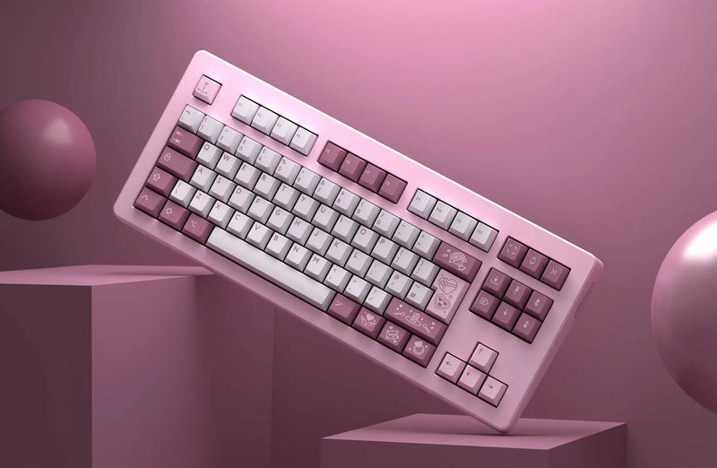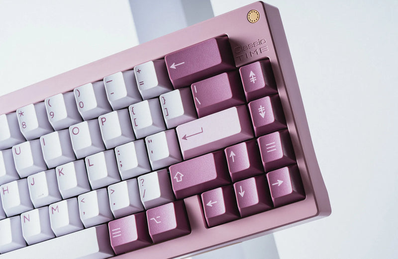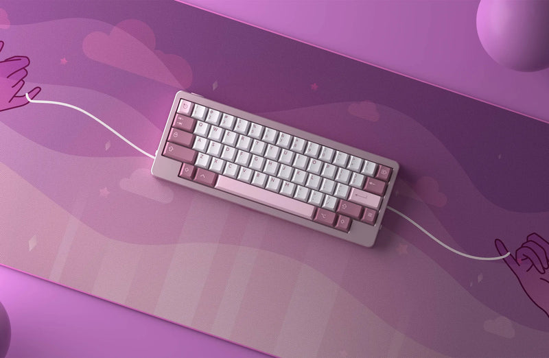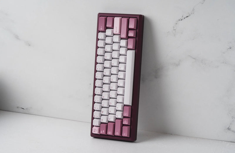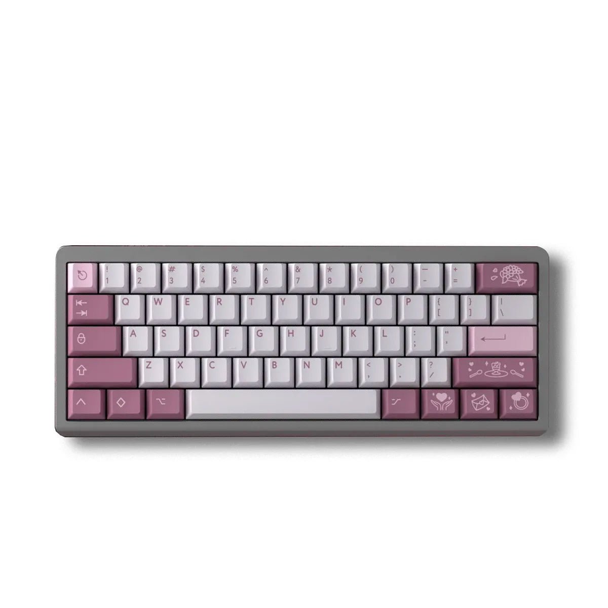 PBTfans Blush Keycaps are centered around cute dates and the milestones a pair goes through in an intimate relationship. Showcasing a darker toned pink legend and accents on white alphas. Novelties are designedy by Seo Bun and the base concept by Captain Sterling.