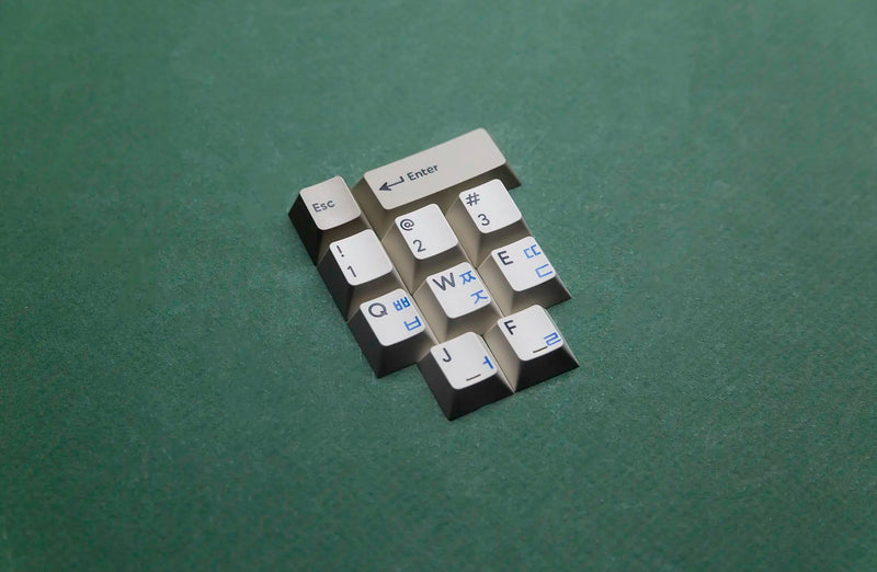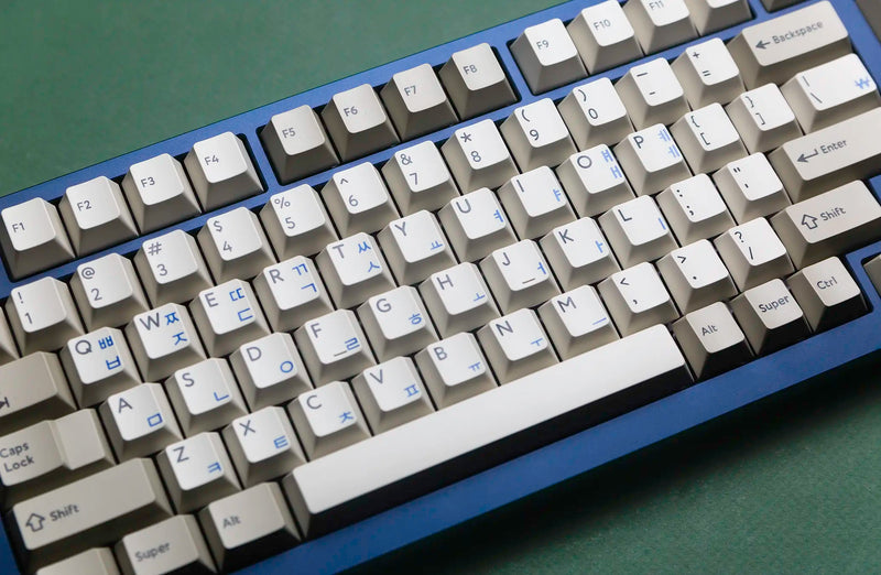 PBTfans Classic Hangul Keycap Set is designed by Zetina. The keycap set incorporates the classic beige colorway with Hangul sublegends in either black or blue.