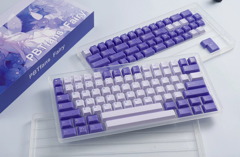 PBTfans Fairy Keycaps are designed based on the Very Peri colorway from Pantone's 2022 Color of the Year combined with PBTfans semi-transparent modifiers. This gives of a clean look while also displaying unique and interesting features.