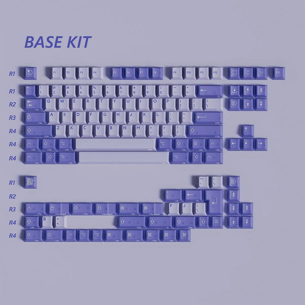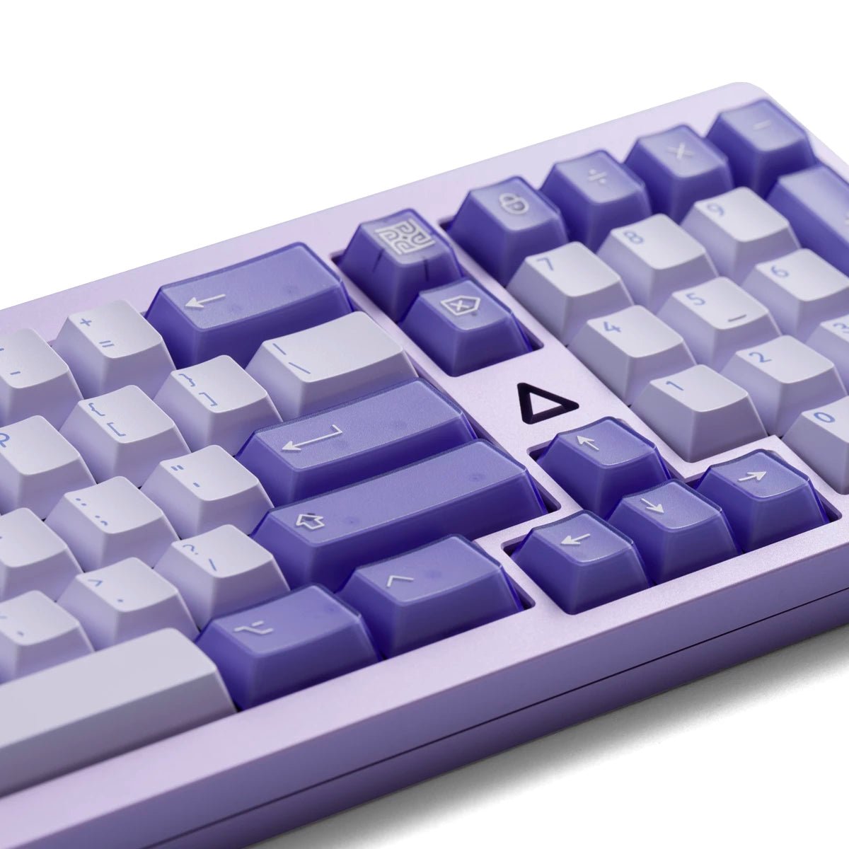 Light purple was chosen for the alphas to complement and highlight the brilliant Very Peri. Made with opaque ABS material, we wish to bring a lighter, crisper typing sound to match the sophistication that comes with the purple tones we have chosen.