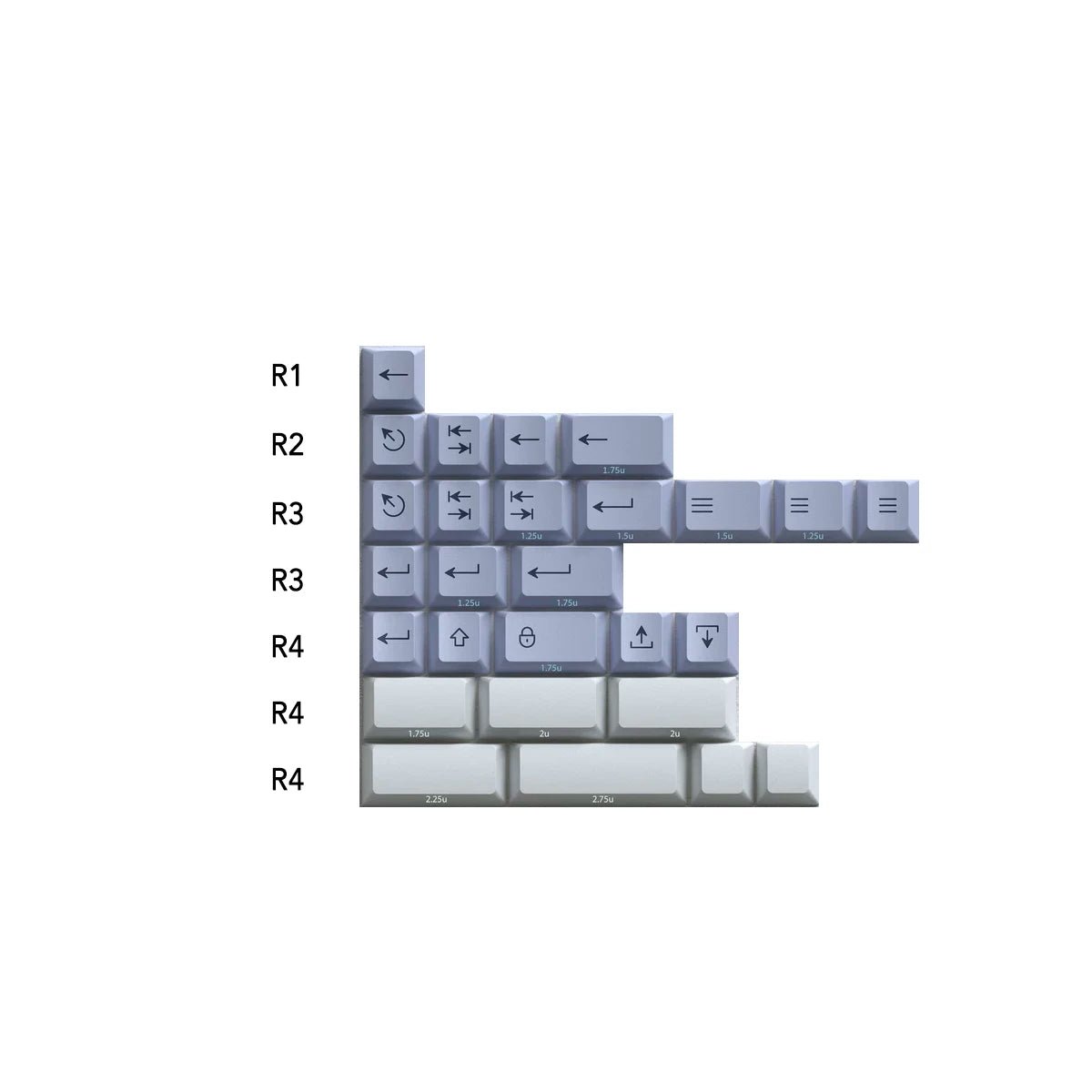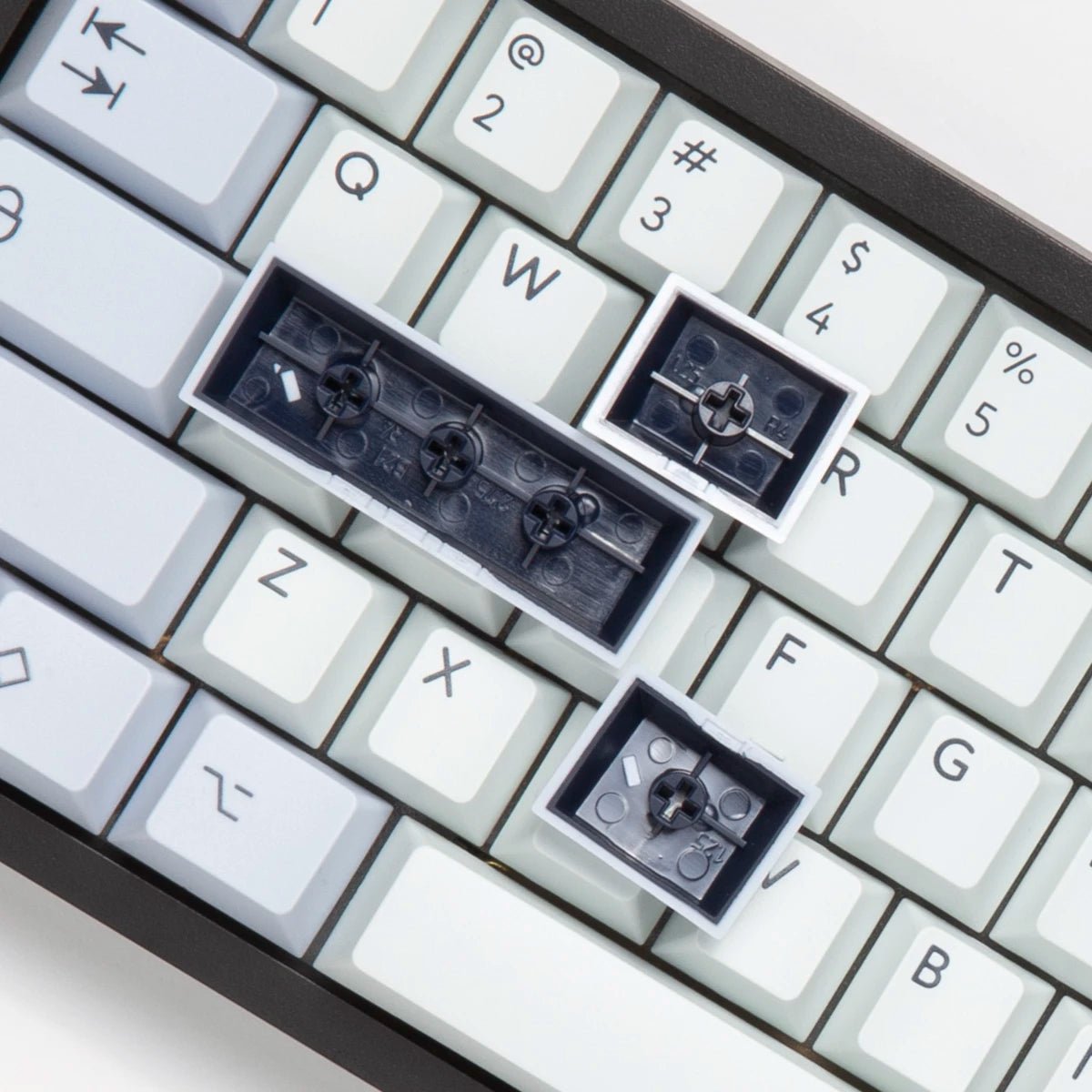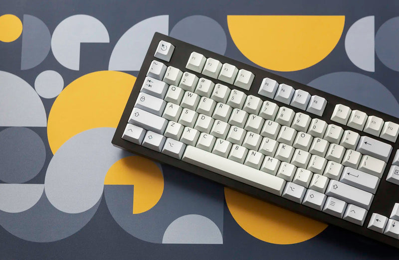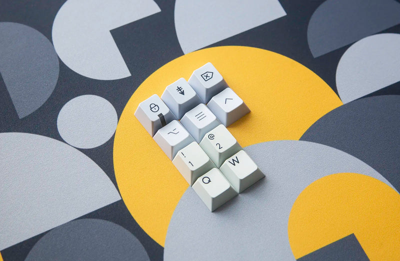 PBTfans Spark Light Keycap Set follows the PBTfans Spark set by incorporating a lighter tone while still maintaining the elegant aesthetic. A mod kit is also available to accent it with a darker or more colorful theme.