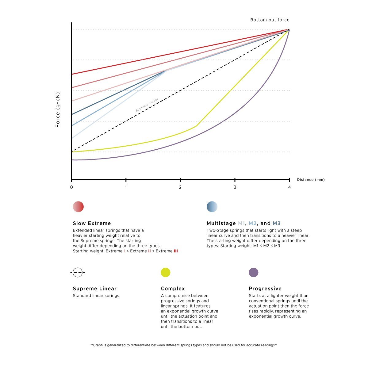 SPRiT Slow Extreme Springs are linear springs that has a heavier starting weight relative to the Supreme springs. Coming in Extreme I, II, and III to differentiate between heavier starting weights with the same bottom out force.