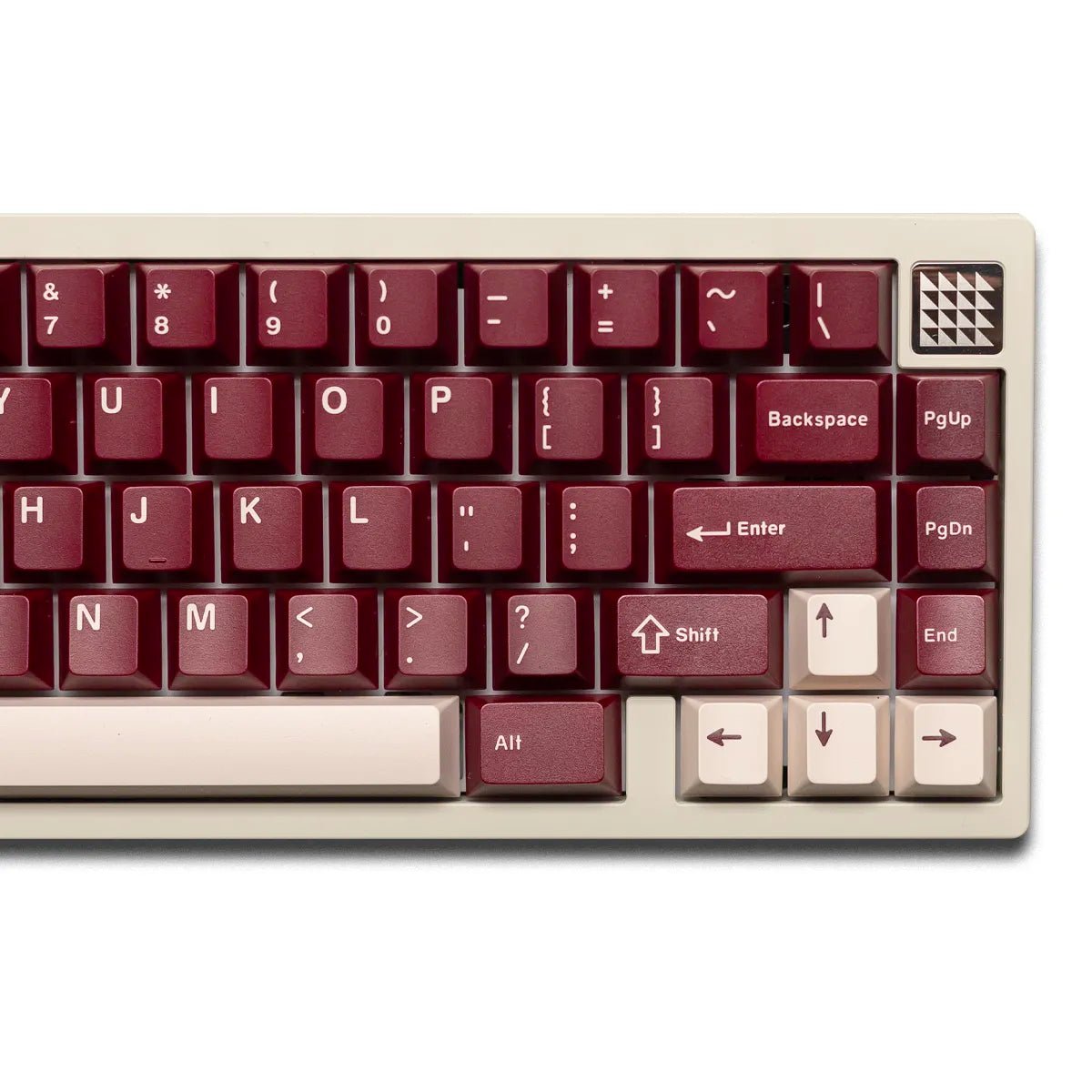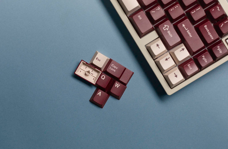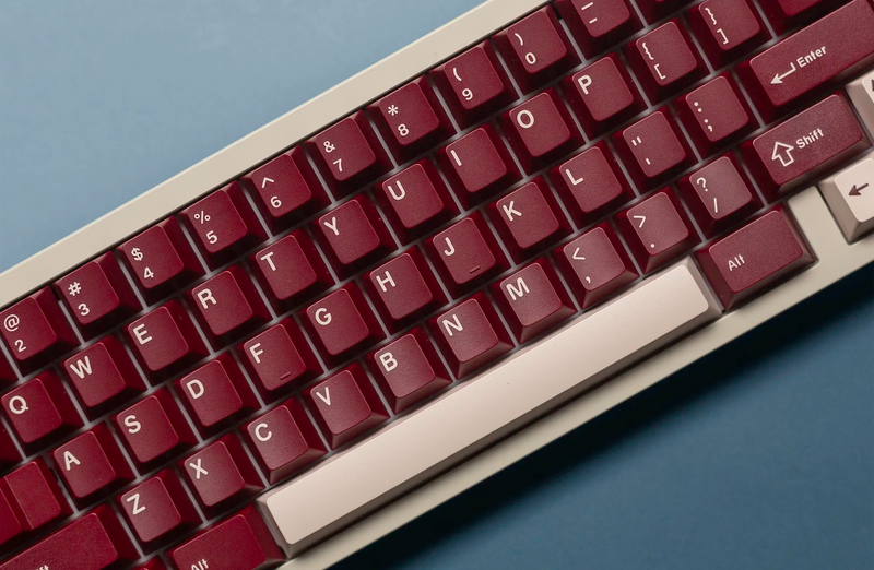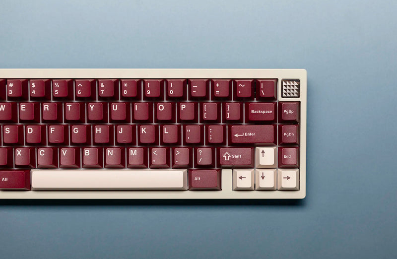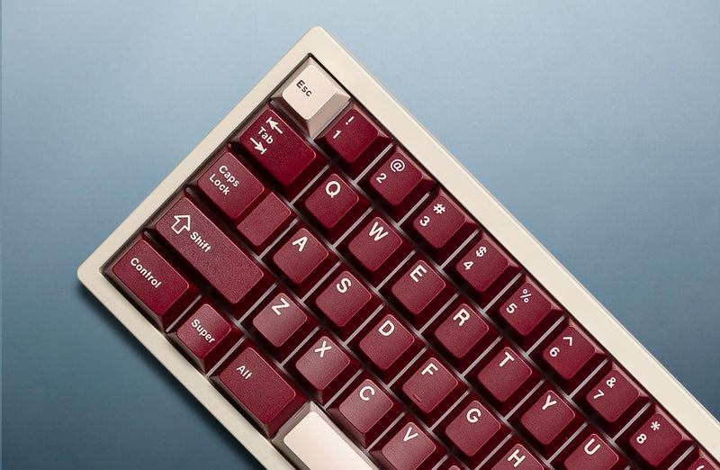Swagkeys La Vie en Rose R2 Keycaps take inspiration from roses with a rose red color profile and deep cream legend and accents. Made with a doubleshot PBT+ABS mixture to reduce shine over time and provide a vibrant color.