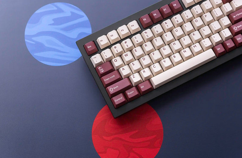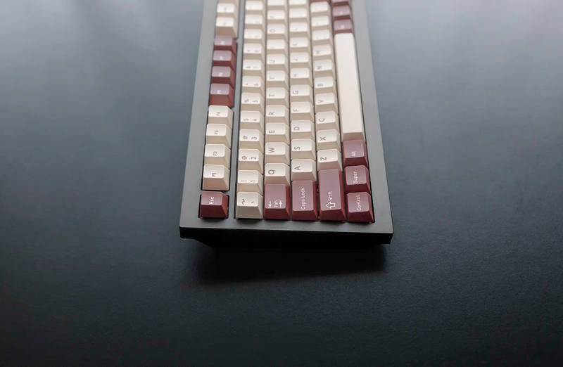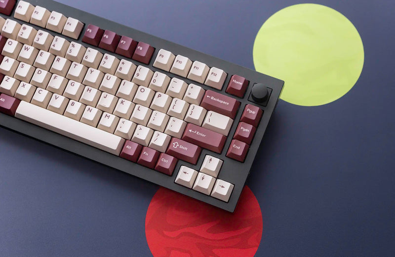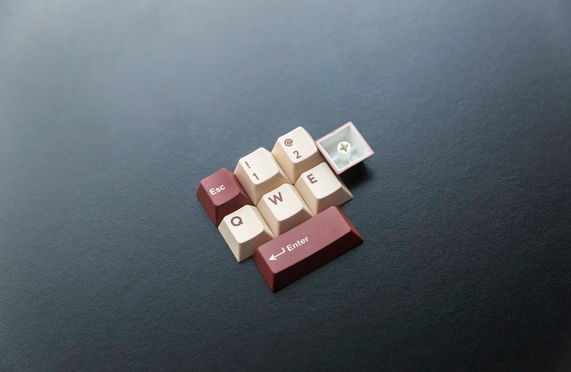 Poco E-Studio Night Owl Keycaps take inspiration from night owls to bring forth this cream colored base with burgundy-brown accents.