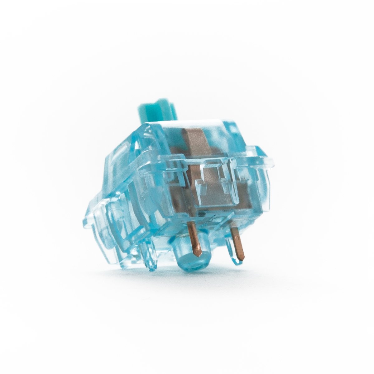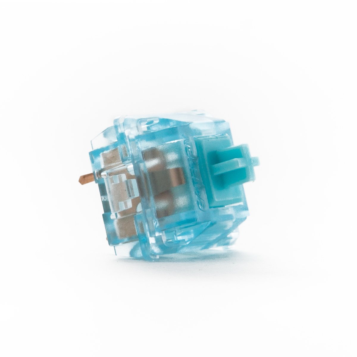 Aqua Zilent Switches are designed for enthusiasts that value aesthetic, tactility, and silence. Coming in both 62g and 67g with matching light and dark aqua color tones.